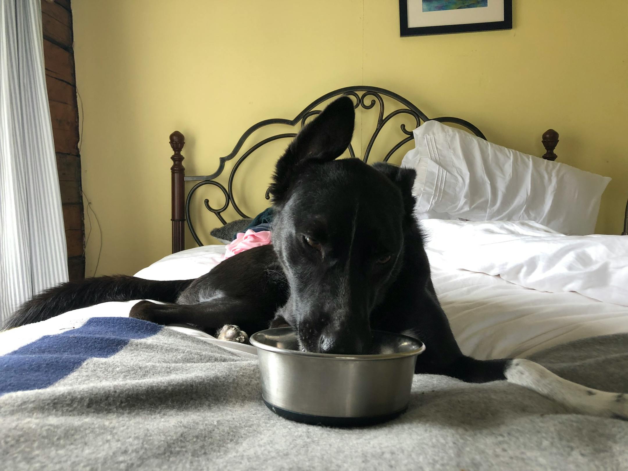 Ever since Angus went on medication to help with his extreme reactivity, just about everything about him is better. He's easier on walks, he's more engaged at home, he's less anxious overall. He seems happy. But he doesn't want to eat.