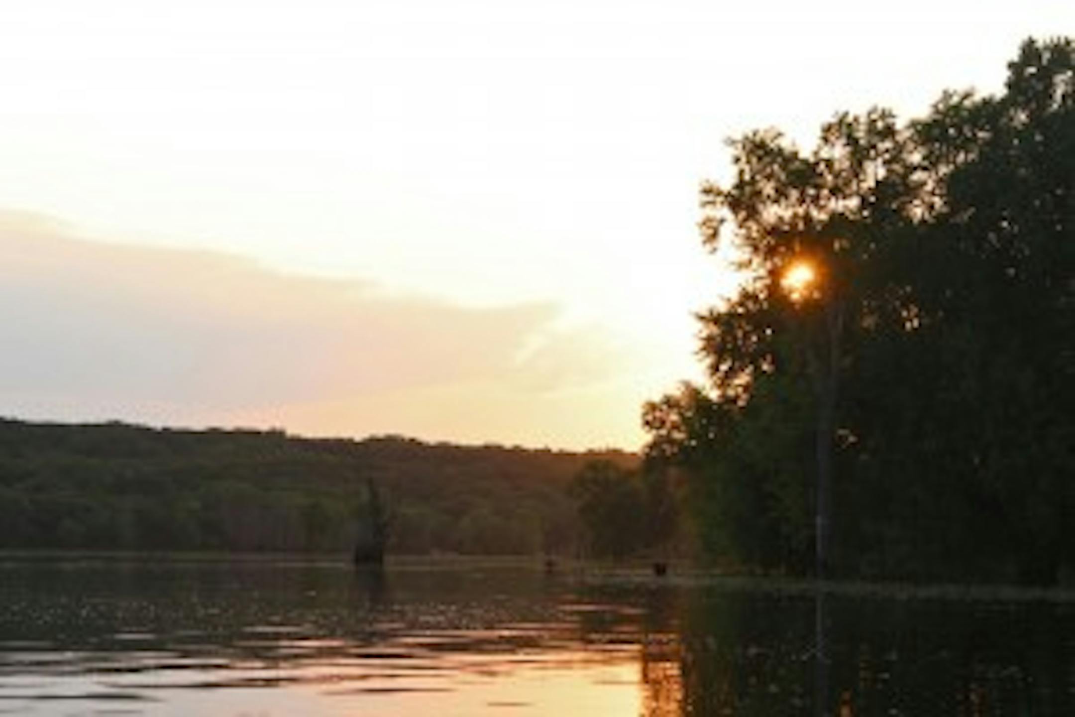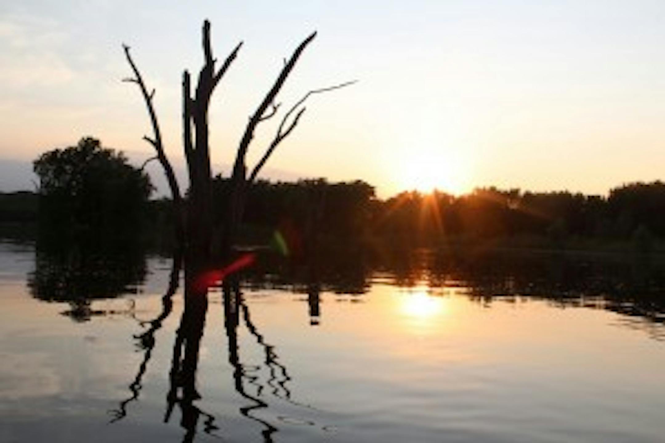 The sound of rushing water greeted us Friday evening as a friend and I launched our canoe on a small Wisconsin river which shortly downstream spilled into the St. Croix. We had fly rods and dreams of bass and muskies, and also my camera and thoughts of a summer sunset.