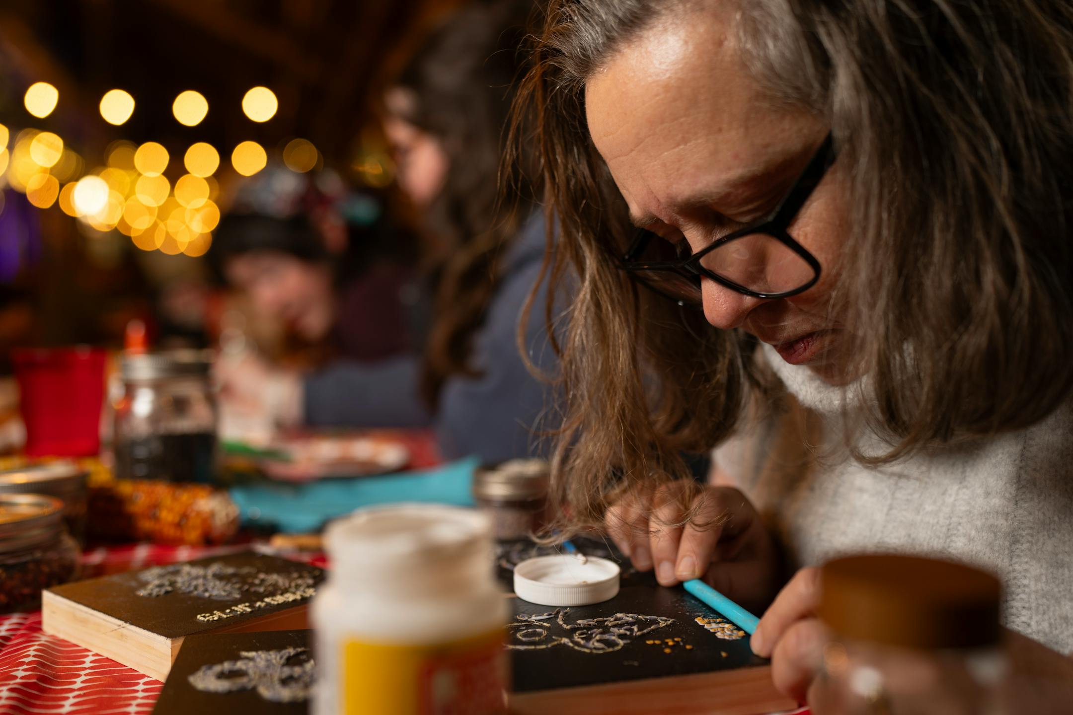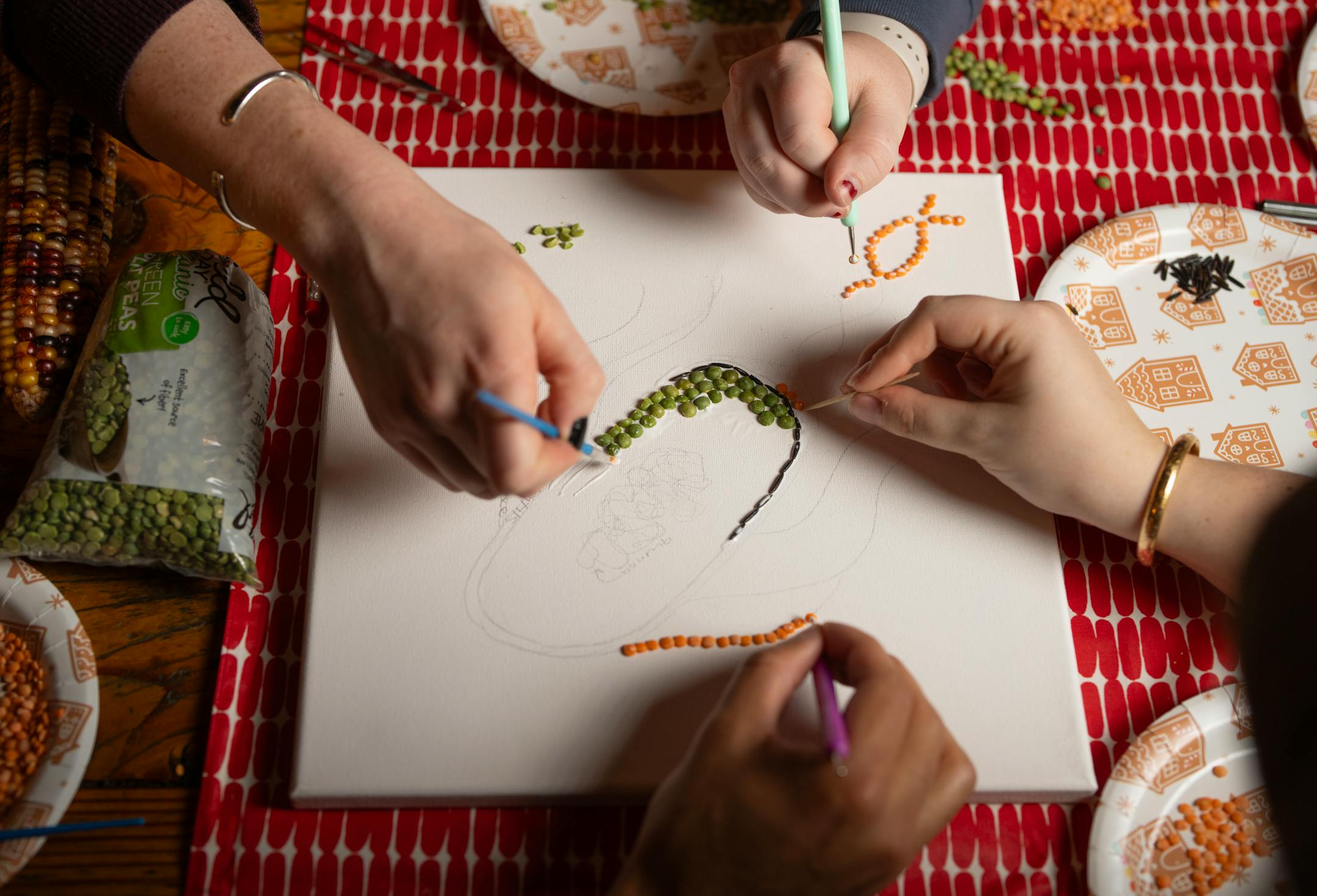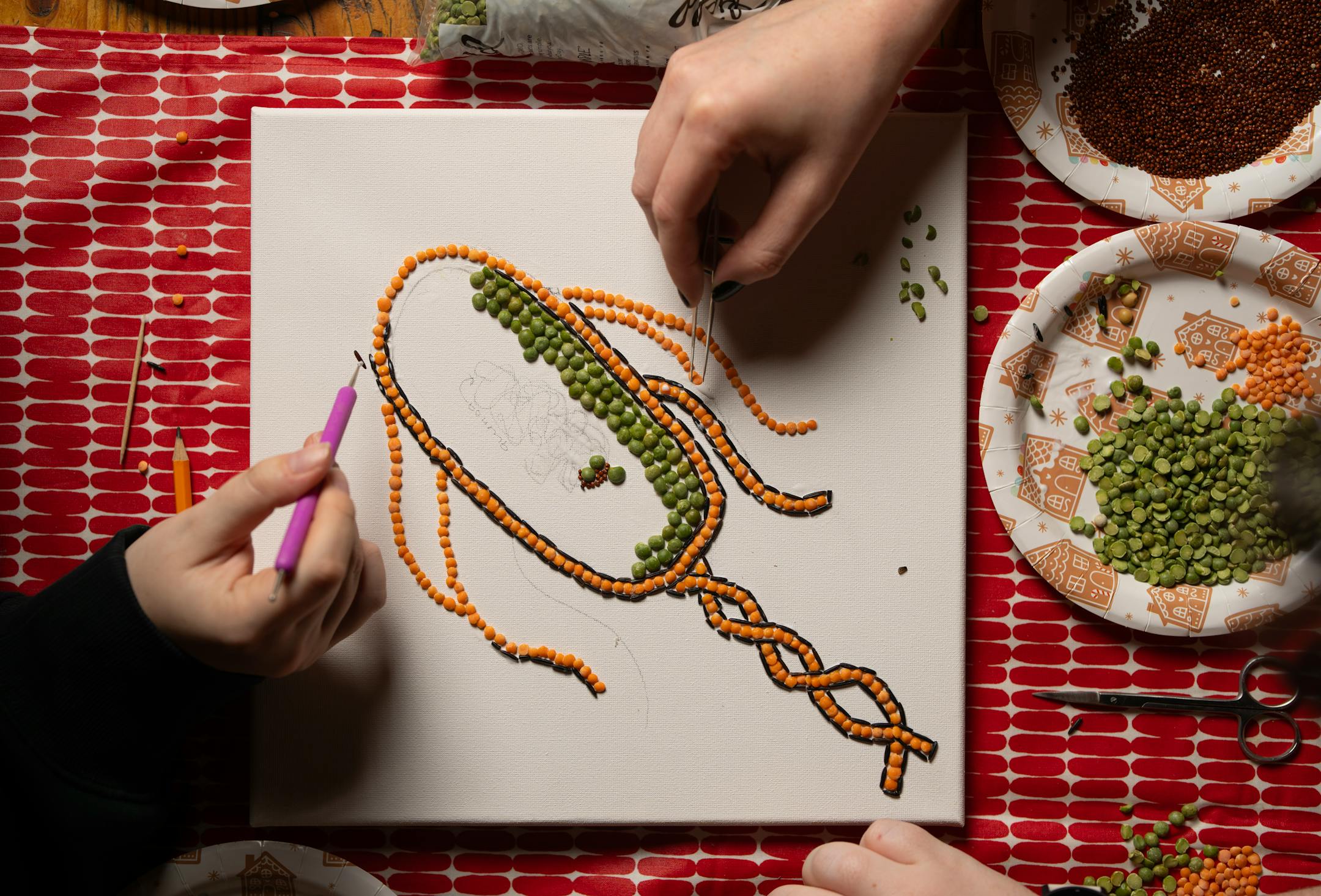 At the second monthly Crop Art Wednesday meetup Dec. 17 at St. Paul’s Lake Monster Brewing Co., about a dozen aspiring and longtime crop artists mingled and mixed seeds.