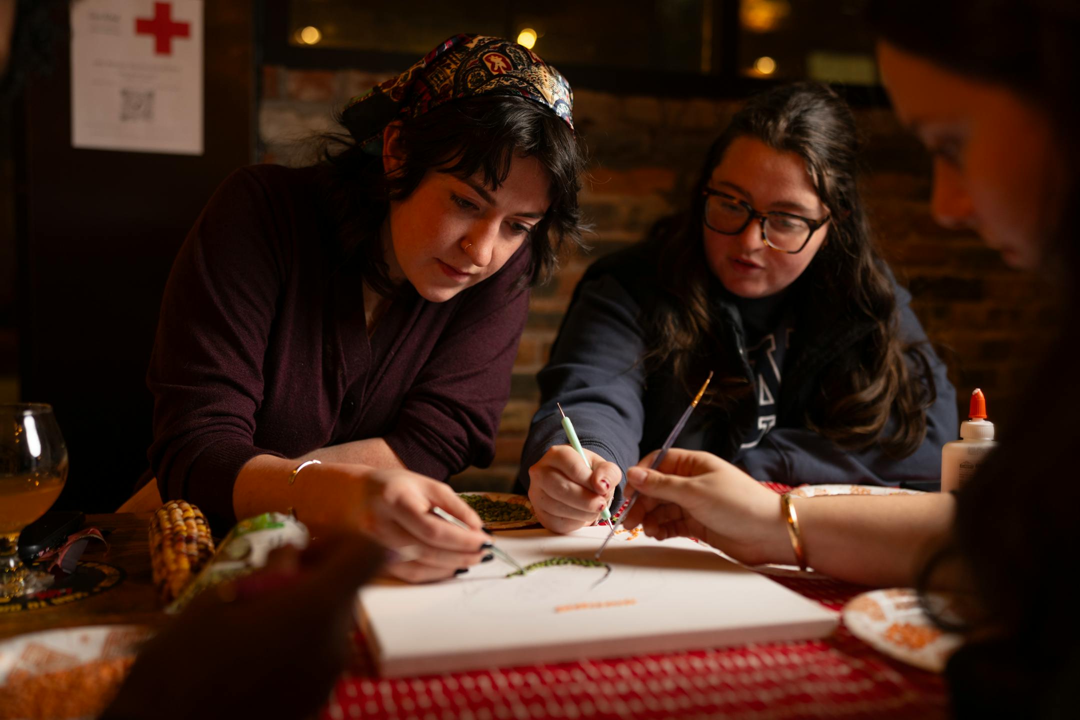 The brewery was packed. Patrons sipped beer at wooden tables, and pizza deliveries popped in from nearby OG Zaza. A noisy crowd at a climate action event gathered in back. Up front, crop artists chatted and seeded.
