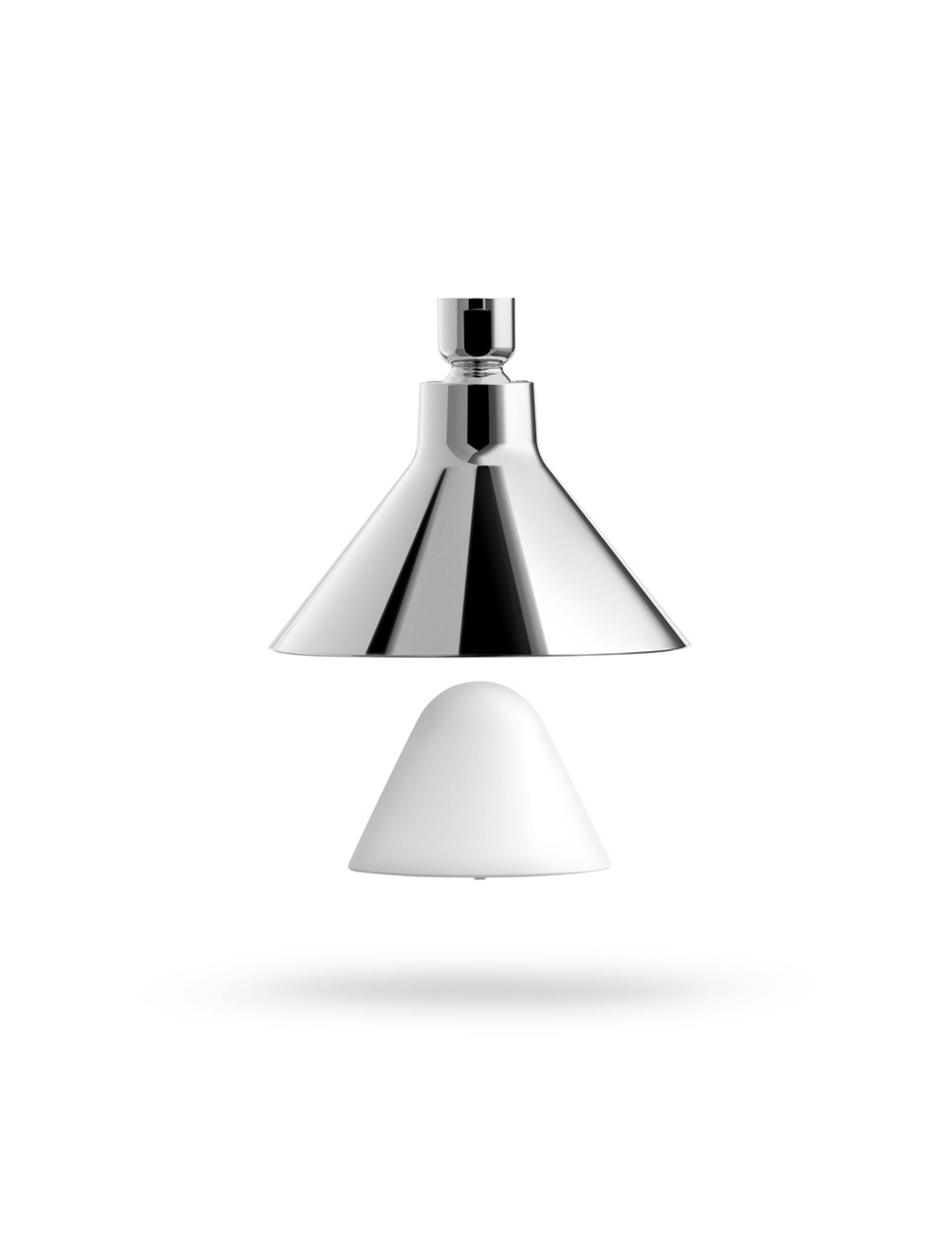 The shower head is available with a spray of either 2 or 2.5 grams per minute, in either white or polished chrome finish.