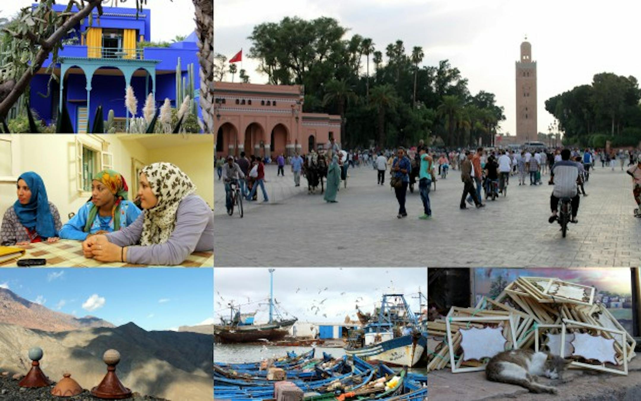 We spent the night in Association Tishka, a dormitory for women going to vocational school and college in Ouarzazate. After dropping our stuff off and walking around the city a bit, we sat down to a meal with the girls. At first, it was a little awkward: the language barrier and the fact that we were split up between different tables made the situation feel a little forced. However, my fellow American student at the table spoke excellent French and we were able to have an enlightening discussion about education, women's issues and their hope for the future. The main issue, they said, is poverty. Though education (through college) is free, students have to buy supplies and books, which can be too much for poor families. In addition, students in rural areas sometimes have to walk an hour or more to get to school, which can be dangerous and take away from time they could be working at home. They also pointed out that unemployment is high in Morocco and they are worried about getting jobs. The next morning we left bright and early for a winding ride through the High Atlas Mountains. Our program coordinator insisted that this twisting mountain pass makes even the heartiest of stomachs turn, so I took a Dramamine just in case. Not my best idea. I slept through almost the entire trip through these gorgeous mountains, only waking up for a brief panoramic view of the peaks. I was still a little woozy by the time we got to Marakkech, but the hustle and bustle of this big city woke me up fast. Marakkech is known as the tourism capital of Morocco, and as tourists for the afternoon, we figured out what that meant fast. We were ripped off on two taxi rides before finally insisting on a pre-fixed price before accepting a ride. We quickly became fluent in the language of "too expensive" (trop cher in French and rahli in Arabic if you ever happen to go). We started out at Jardin Majorelle, the gardens of artist Jacques Majorelle restored by Yves Saint Laurent who made it his hippie hang out in the '70s. Though a bit manicured, the gardens are a gorgeous combination of Moroccan influences and European simplicity. The matte blue, yellow and orange flowerpots and architecture adorned with overflowing trellises of pastel flowers and magnificent cacti gave the impression of stepping into a Matisse painting. From the calm oasis of Jardin Majorelle, we decided to head the to city center and world-famous Djemaa el Fna. This is an ancient sprawling square populated with snake charmers, storytellers, henna artists, vendors and food stands. Chaos would be a mild way to describe the atmosphere. As soon as we stepped onto the ancient cobblestone we were accosted from all sides. I had two snakes literally wrapped around my neck for "good luck" (in other words 20 dirhams), my friend looked toward the orange juice stands and became the subject of a fierce argument for her business between two competing vendors and another friend was attacked by henna artists and came out with an intricate design splashed with glitter. Aside from the vendors, motorbikes zoomed in every direction, taxis occasionally drove straight through the square and men shouted "Shakira!" "Spice Girls!" at us no matter where we turned. It was thrilling, but dizzying. We headed back to our hotel for baguettes, cheese and Meknes wine (from a winery we passed earlier on the trip!) thanks to 50 dirham grocery coupons supplied by SIT, then headed back out to check out Djemaa el Fna at night. The city at night was even crazier than the day, even on a Wednesday evening. Large crowds gathered around dramatic storytellers, hypnotized snakes twisted out of their coils to the sound of reedy pipes and greasy steam billowed from sizzling grills. The tourism-fueled intensity was ever present, and especially noticeable when we walked through a row of open-air grills and men waved menus in our faces from all sides for the entire 100-foot block. Feeling once again overwhelmed, we decided to join our friends at a bar by our hotel. At first glance, the club looked straight out of Miami. It was a monolithic round structure, cream with black trim. We walked inside to a bar bearing the name of a famous U.S. crooner, and it was like we had also entered the U.S.: women in Kardashian-esque attire and well-groomed men sipped cocktails around cozy tables. A live band played top 40 American and Arabic hits. We were dancing for a bit, when the band began playing a catchy, Latin-inspired song and pulling women from the crowd up on stage to dance. The lead singer, dressed in a sassy red dress festooned with a flower, pulled my friend up on stage who implored me to join her, so we hopped up on stage for a minute or two, goofing off with silly dance moves before stepping down to what sure sounded like resounding applause. We kept dancing, and the practice continued: women were pulled up on stage to dance, but their moves were less goofy and more suggestive, gyrating and grinding. No one called to a friend to join them, nor ran off stage to a group of laughing companions. In fact, they all seemed to get off stage and back to a specific man. It clicked. They were prostitutes. I knew this was the case in a lot of bars in Morocco, but this was the first time I faced it in person (knowingly). I suddenly felt a bit more conspicuous (did the men here think I was a prostitute too?) but also sad: for me, this night on the town is free of worry and obligations. For nearly every other woman in the room, it meant something entirely different. It was also interesting to see that there were many western men at the bar; we learned later that Marakkech is a hotspot for "sexual tourism", or men who come here just for the prostitution. Though Marakkech is a place especially notorious for this, nightclubs across Morocco are known as a place to pick up women. It seems to play into the "exoticism" that often drives tourism here: come to Morocco, meet a beautiful Arabian woman. Though we definitely enjoye
