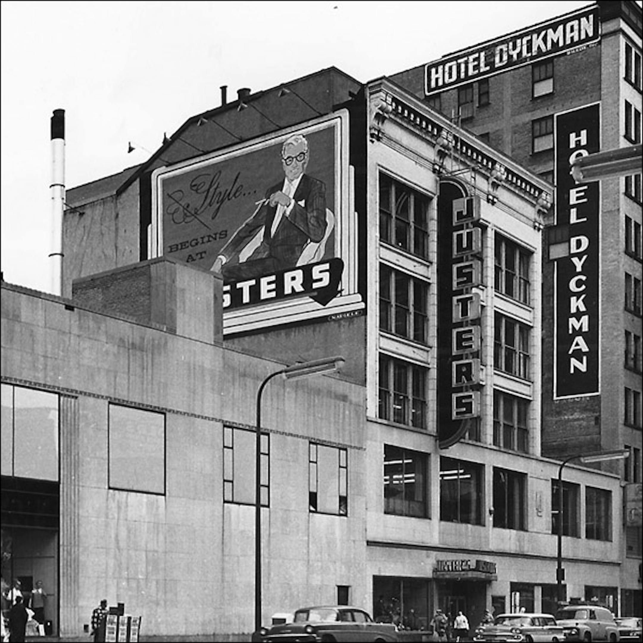 Juster's is gone now, but when this picture was taken it was more than 50 years old. P. B. Justers started selling suits in 1908 in the Dakotas, and moved to Minneapolis in 1914. Their downtown headquarters looks impressive in this picture, and no doubt they regarded themselves as a downtown fixture.