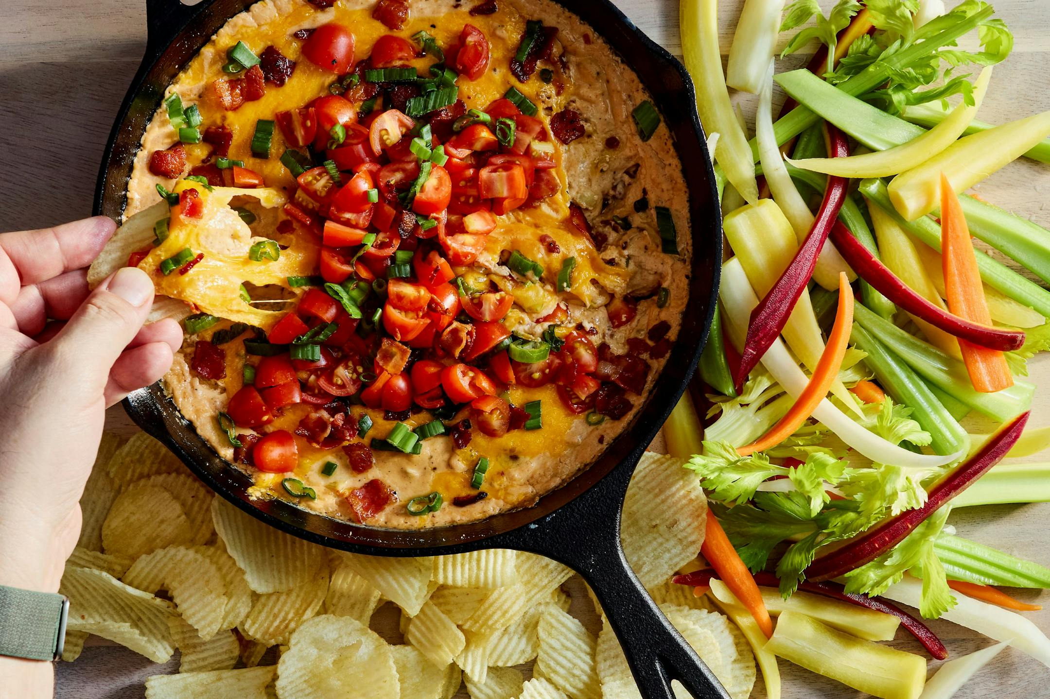 My ideal dip would be something thick and creamy enough to cling to your chip but not so gluey it sticks to your teeth (or the rug). Hot and oozing is nice, especially in February, and I’m partial to bubbling, melty dips with sweeping cheese pulls.