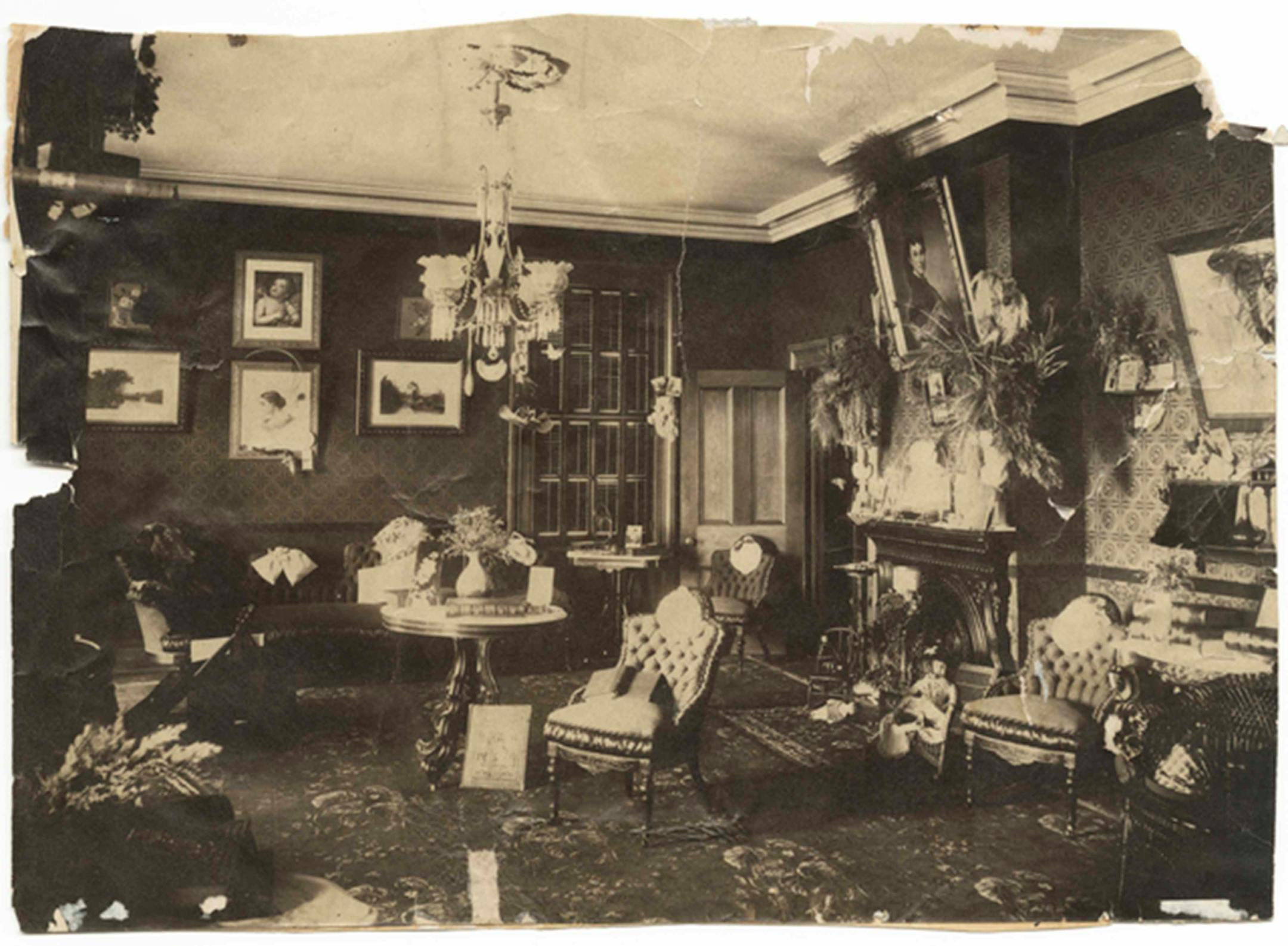 I’ve found no photographs of the house in its original form, but it must have been a fairly simple Greek Revival affair, judging from what can be seen of it in pictures taken after it was remodeled and greatly enlarged by a new owner in the 1880s.