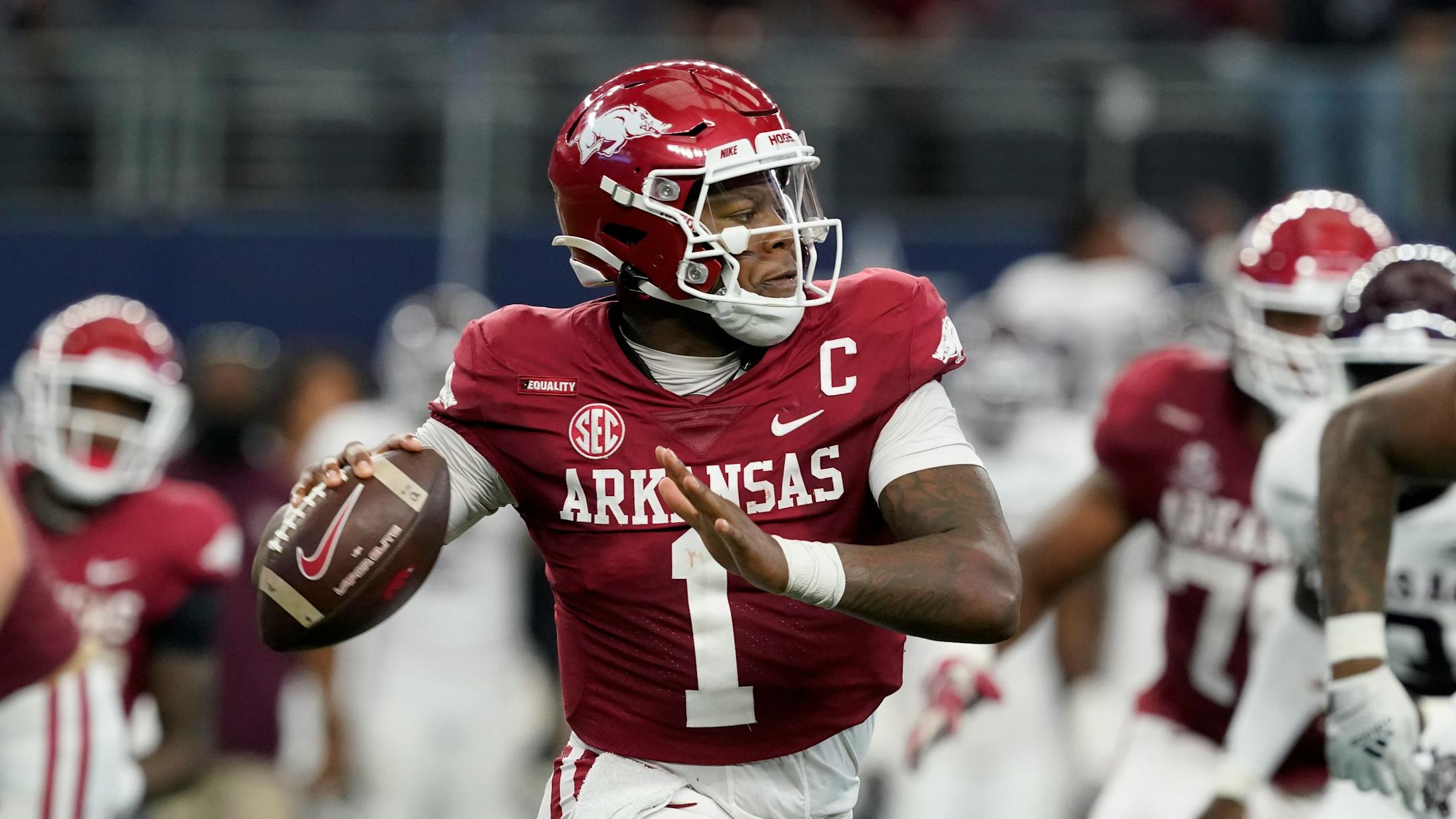 Under second-year coach Sam Pittman, the No. 8 Razorbacks already have won the mythical Texas state championship, beating both Texas (40-21) and Texas A&M (20-10) and rushing for 530 yards in the process. Starting Saturday, they start a three-game stretch against No. 2 Georgia, No. 12 Ole Miss and No. 22 Auburn.