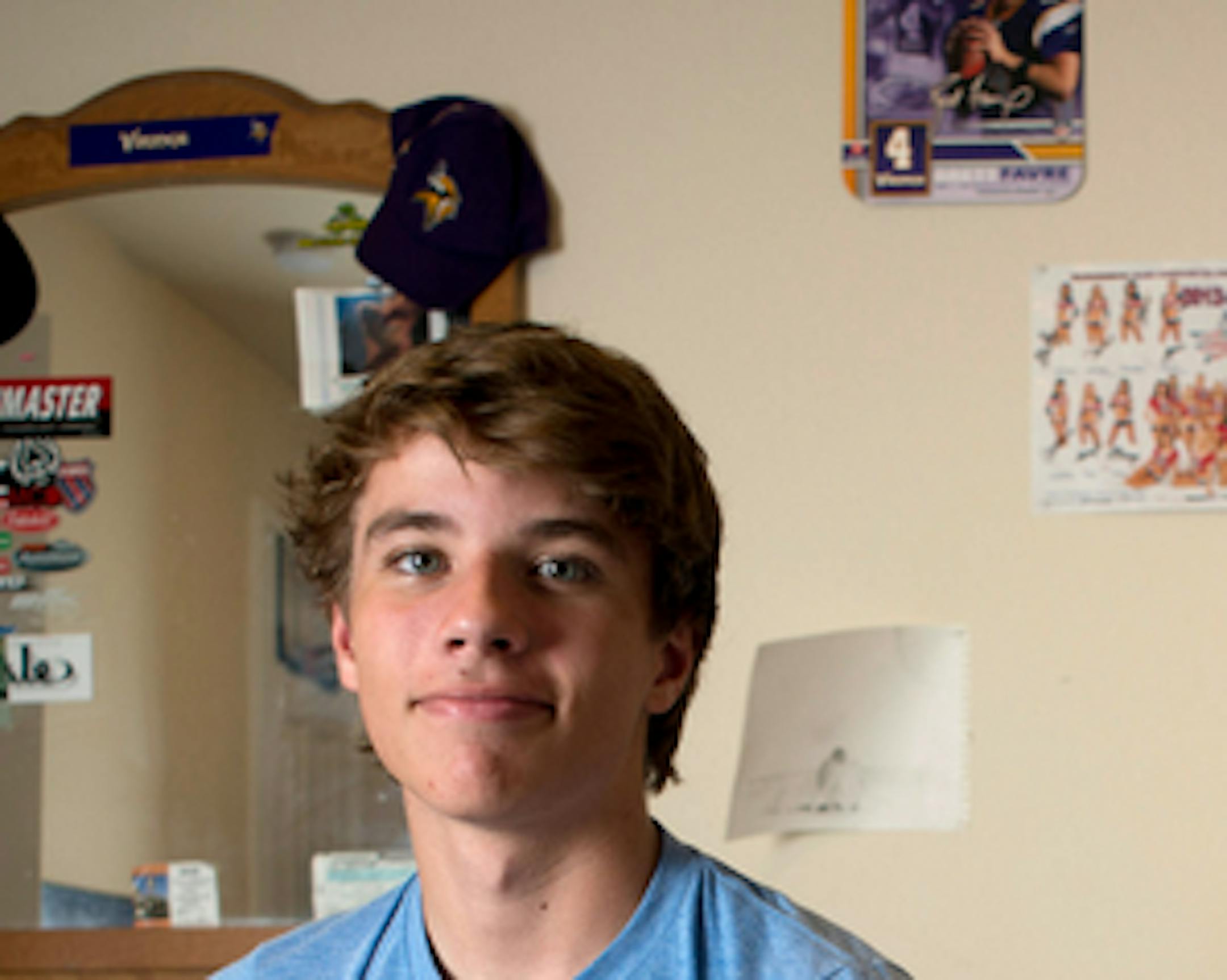 A Vikings cap, a Vikings decal on his mirror and what appears to be — yes — a Brett Favre Vikings poster. The story makes no mention of this fandom (and why would it), but we're going to roll with it.