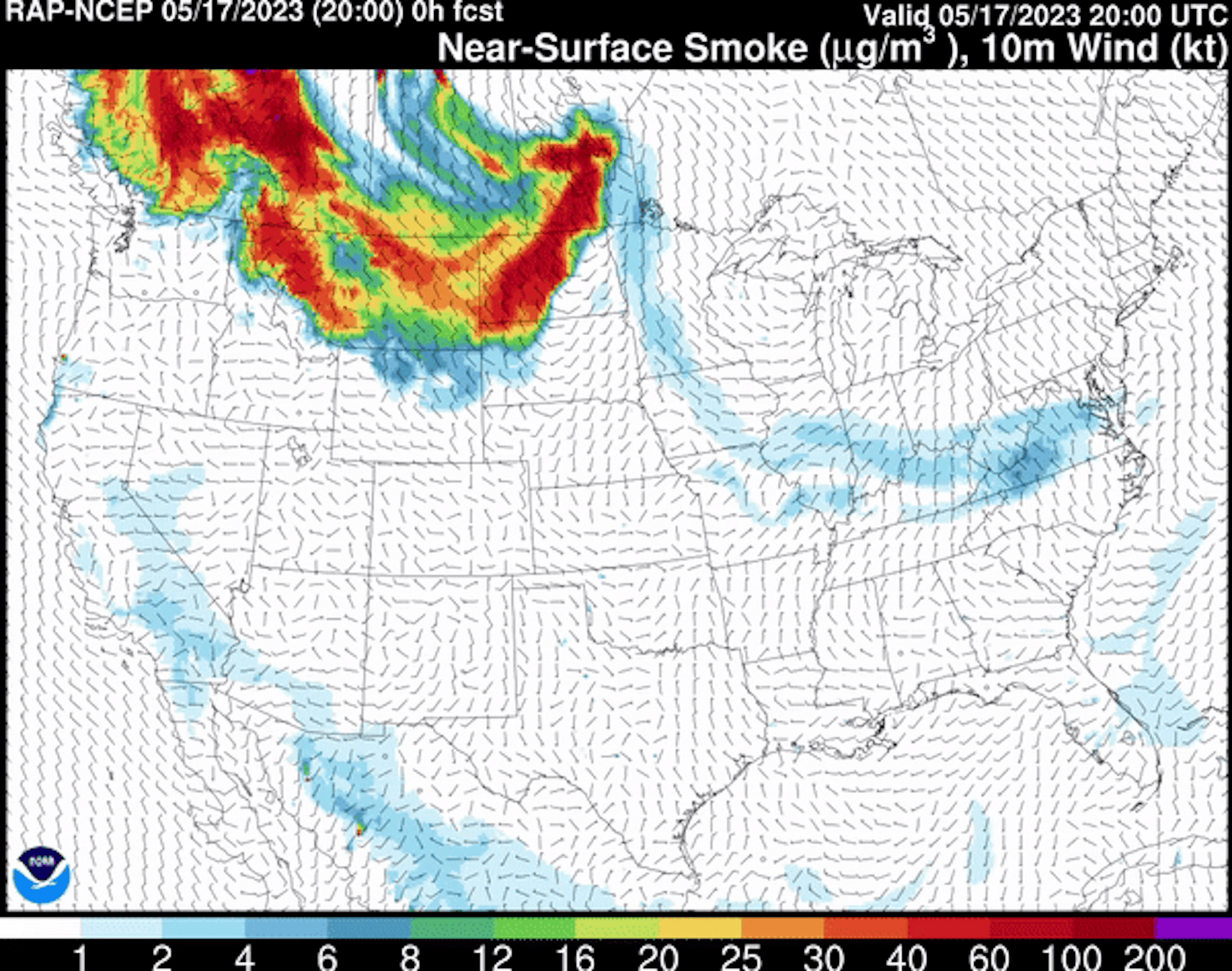 Forecast near-surface smoke between 3 PM Wednesday and Noon Thursday.
