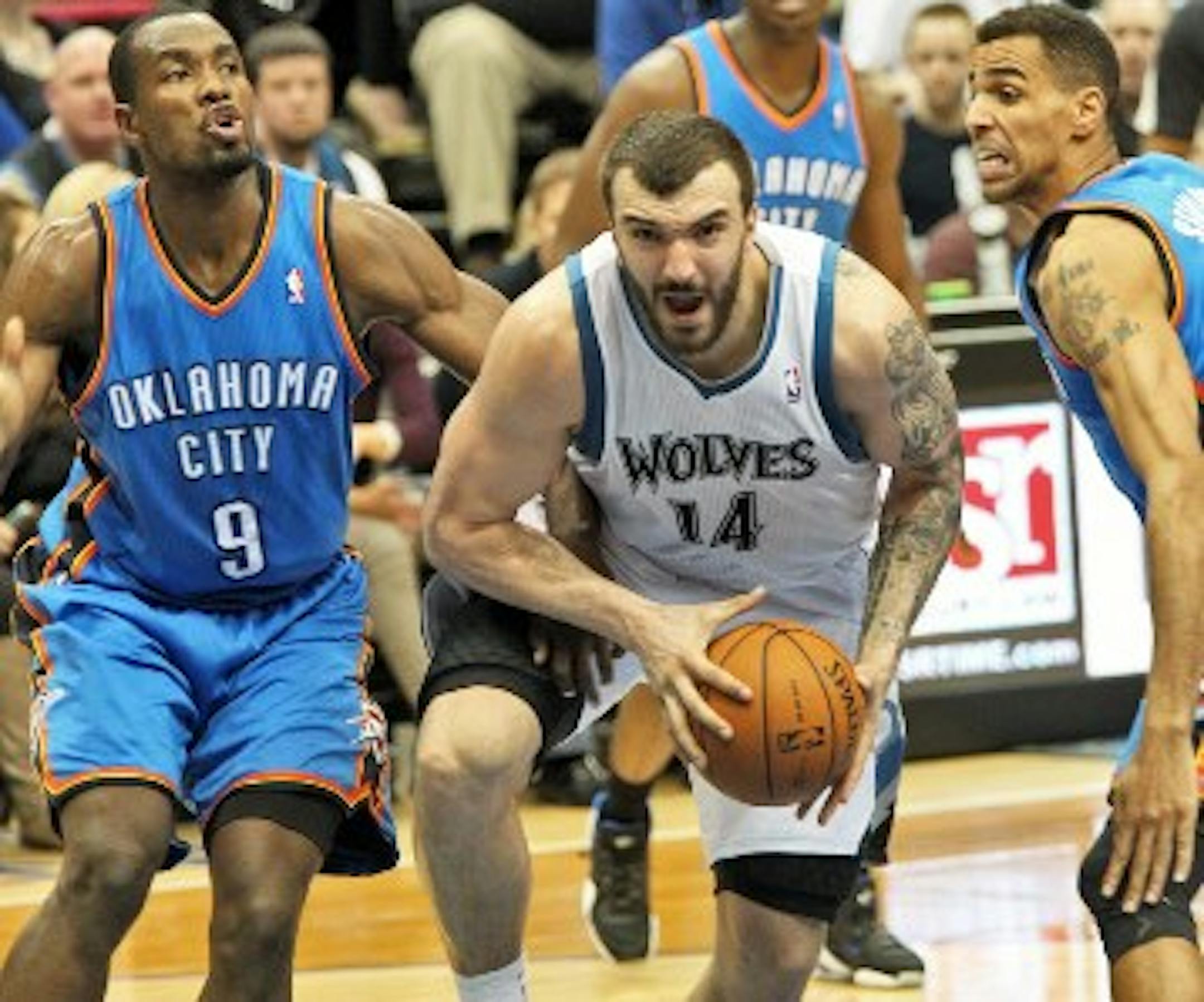 *All 12 guys listed aren't going to be healthy for all 82 games. That's a given. But when they are all available, who are going to be the odd men out? Well, our first candidate is Shved. He played a lot of wing by necessity last year. He was useful at times, but when his shot wasn't falling, he wasn't terribly useful. He averaged 24 mpg as a rookie. If that's cut in half this year, we would hardly be shocked. Next up, we hate to say, is Williams. Where is he going to play if Love is healthy and going 38 mpg? Even if Love slides over and can play center from time to time against certain teams, it's hard to picture Williams playing more than 20 minutes. If the Wolves thought he could be a true small forward, they wouldn't have brought in Muhammad, Budinger and Brewer. Speaking of Muhammad, we're imagining very limited minutes his first season unless there are injury problems. It wouldn't shock us at all if Dieng played more than him based on need (there is no true center aside from Pek now that Stiemsma is gone) and what he brings to the table.