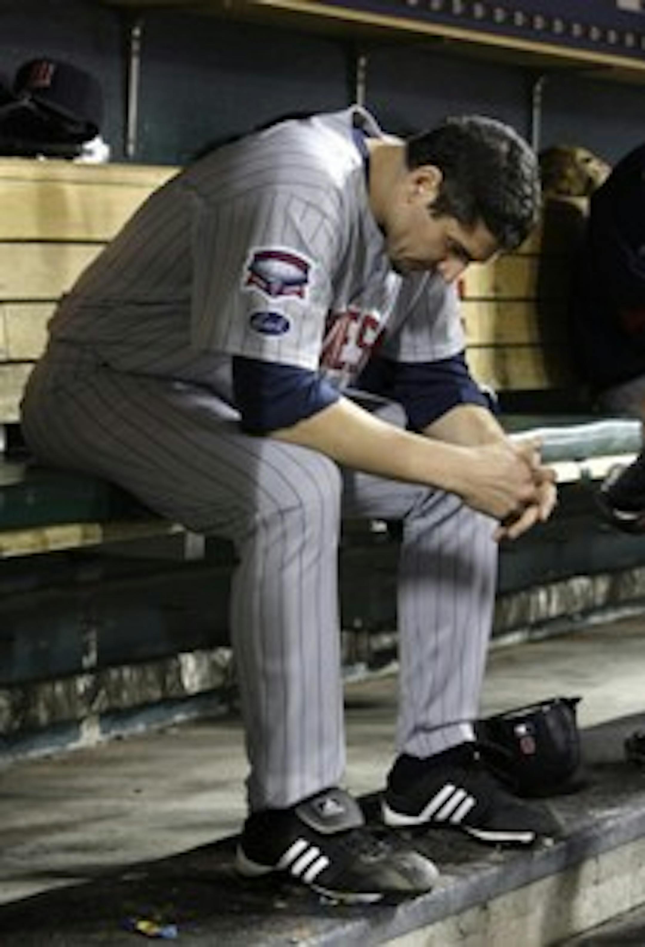 The Twins clearly haven't had an ace since Johan Santana left and Francisco Liriano fell apart. They have a bunch of No. 3 and No. 4 starters, which can work over the balance of a season but often comes up short in "must-win" situations like these last two games and the playoffs. They've had guys pitch very well over stretches -- Scott Baker and Nick Blackburn in particular. Carl Pavano, a nice pickup, was as close as they had this year to an ace. We would not at all be upset if the Twins tried to re-sign him. But while he might have the mentality, he doesn't have the stuff of an ace. And it showed Wednesday.