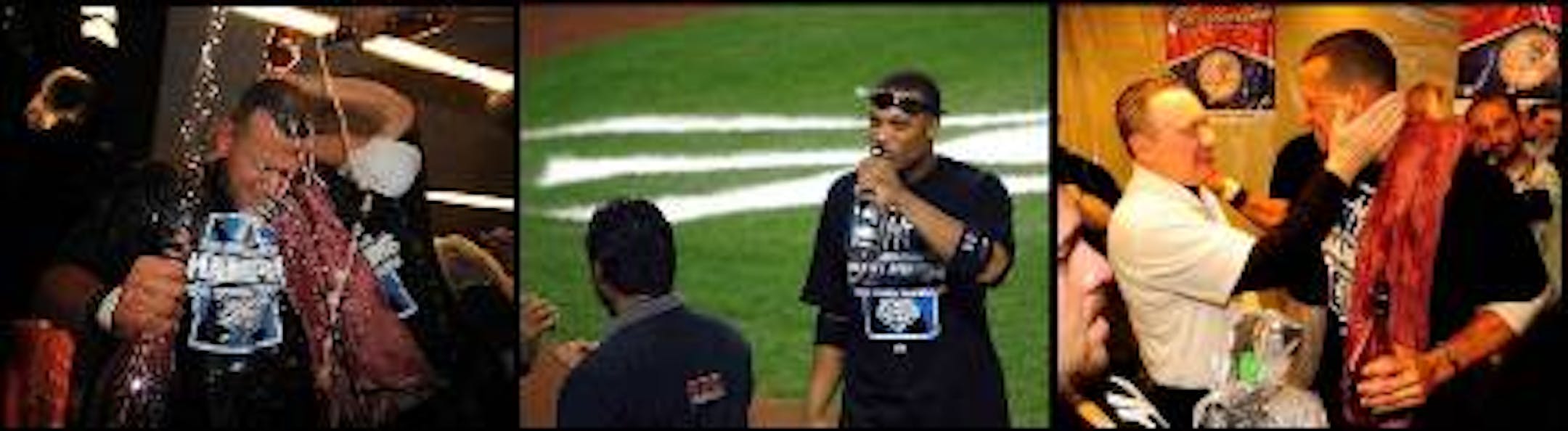 This year, the World Series Champion New York Yankees celebrated in grand fashion with bottles of the #1 rated Champagne in the world, Armand de Brignac. The Yankees also celebrated their pennant victory with bottles of Armand de Brignac (Alex Rodriguez with bottles of the Champagne on the left and right, and Robinson Cano with Armand de Brignac's Blanc de Blancs in the center).