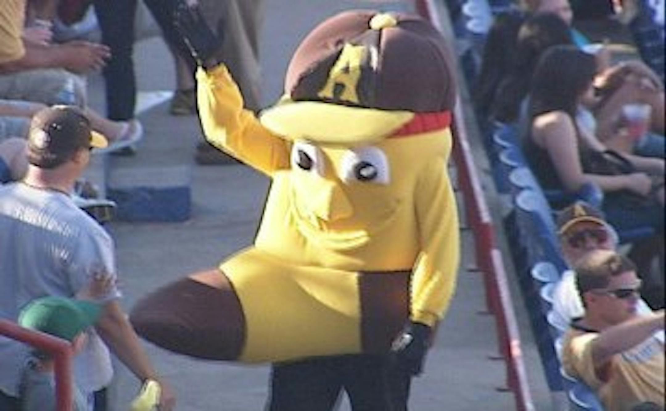 The Amarillo Sox play in the American Association -- same as the St. Paul Saints, your lovable local squad known for wacky promotions. Suffice to say, though, the Saints have never sponsored a night quite like what transpired almost a week ago in Amarillo -- when the Sox unveiled a new mascot. The finished product for the costume? Yeah, it did not match the original design. It was ... well ... you see what happened was ... oh, let's just let the GM of the team handle this. From the Amarillo paper, photo via Big League Stew.
