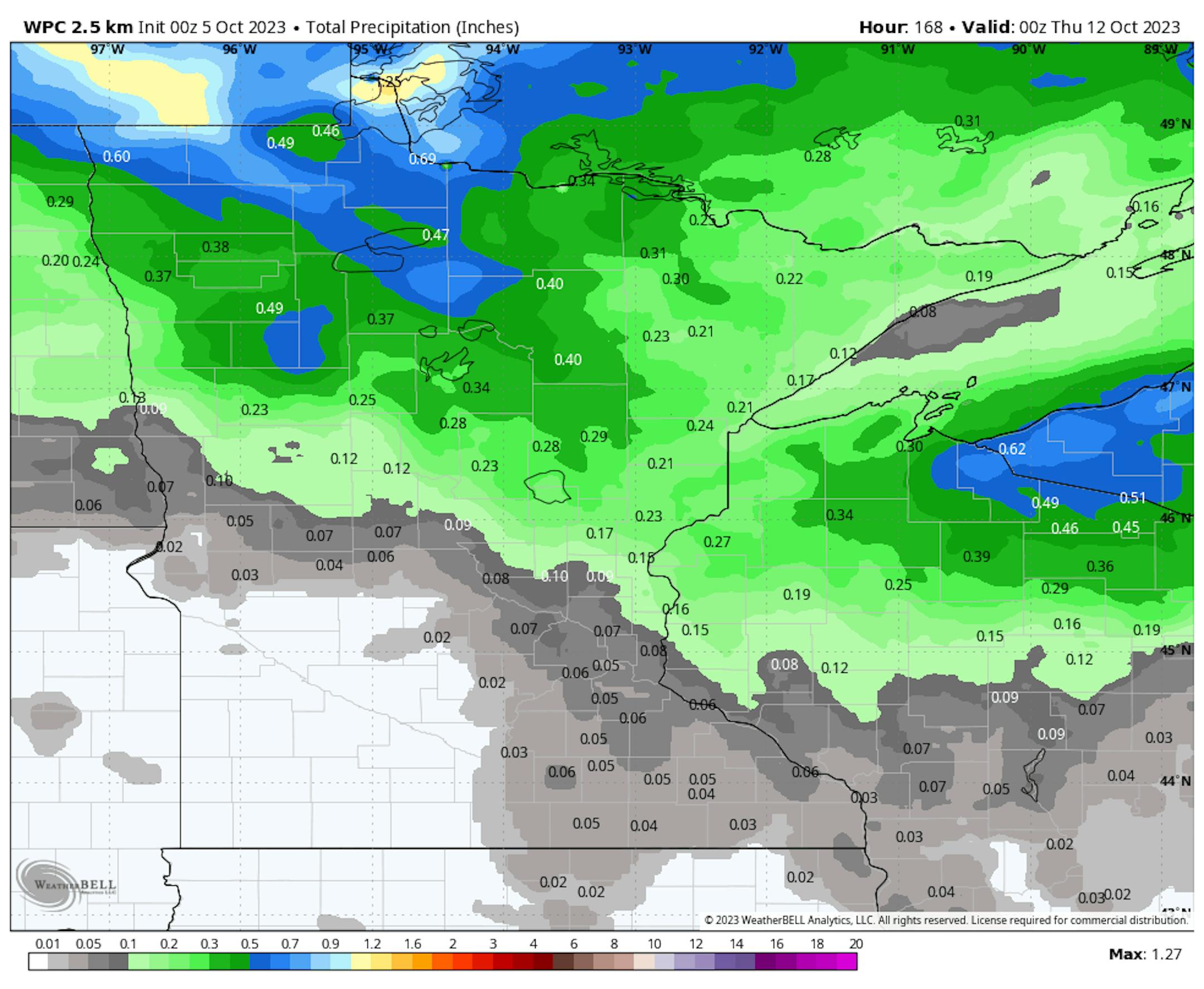 Here's the extended precipitation outlook through next week, which shows limited rainfall across the state. Some of the heaviest amounts will be found across the northern half of the state and especially closer to the international border, where tallies could exceed and approach 1" for some.