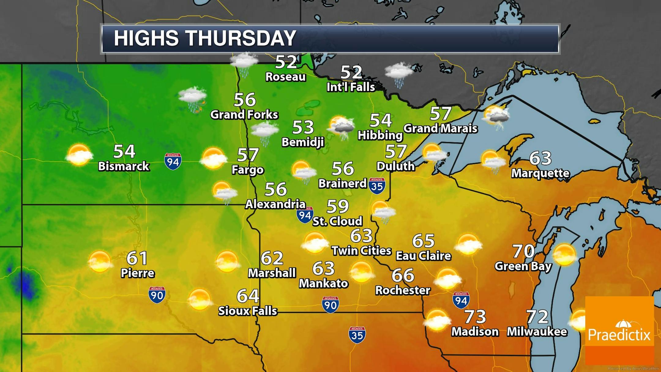 Here's the simulated radar from AM Thursday to PM Friday, which show scattered showers possible the region through the end of the week. Some of the heaviest rains will be found across the northern half of the state.