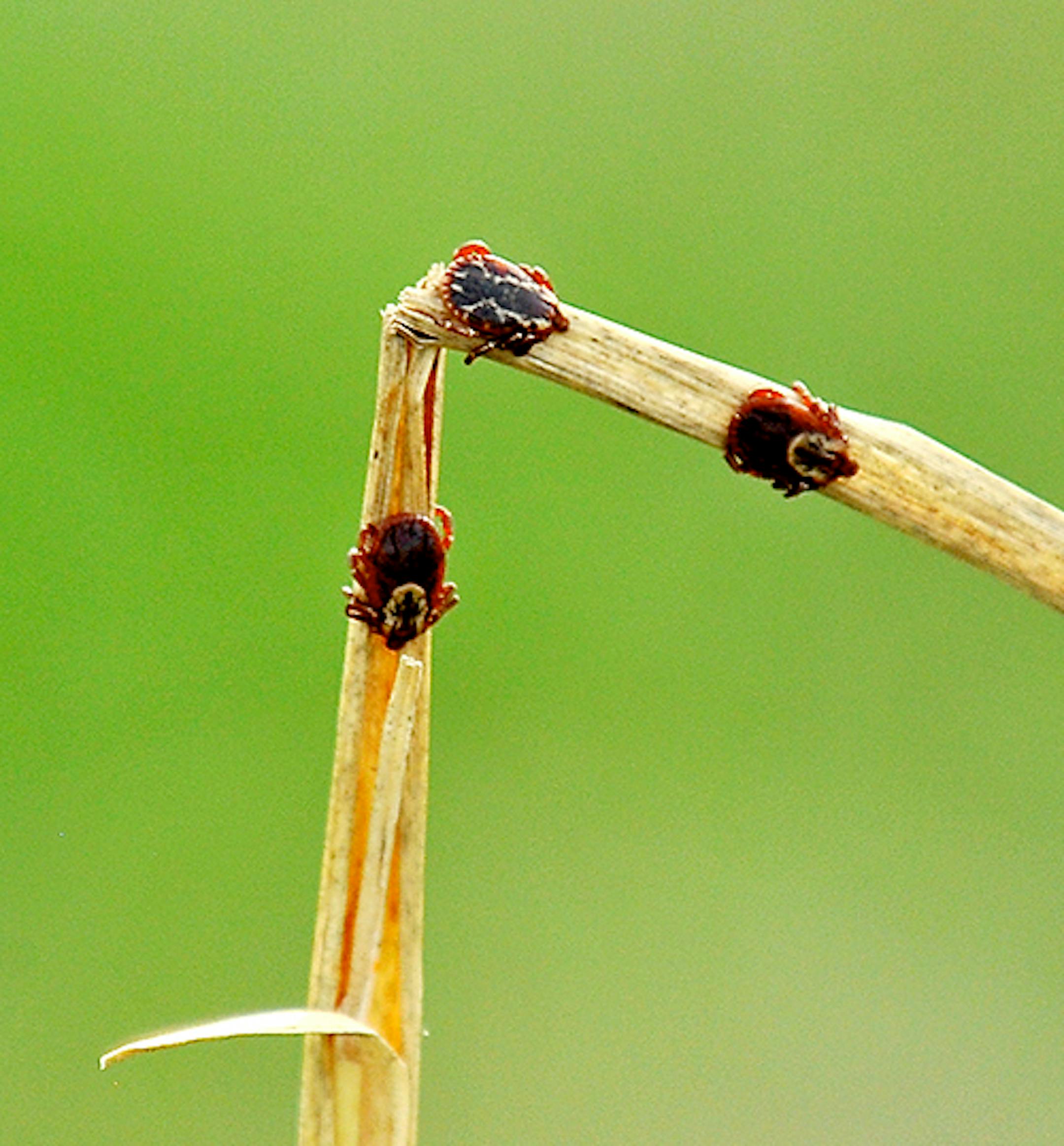 Here we have the birder's nemesis, the wood tick. A weekend in northwestern Wisconsin made me, once again, very aware of ticks. We birded along the dikes of an old cranberry marsh being converted to a wildlife sanctuary. Grass no more than six or eight inches high held lots and lots of ticks. I began to wonder just where they were. So, we began to closely examine grass stems as we walked. It didn't take but a minute or two to find ticks clinging to the grass, waiting for us. Brush the grass, get ticked. Ticks, in case you wonder, are eight-legged creatures, arachnids, related to spiders. The first part of the wood tick's scientific name is Ixodes, Greek for stickiness. Tick legs sense you coming down the trail. The tarsus of the legs has a sensory organ that detects odors (you) and changes in temperature. The tick bites you with a mouthful of teeth that curve backward, like a shark. Tick saliva contains an anesthesia to numb the bite area, and an anticoagulant to keep the blood flowing. Ticks by instinct climb upwards, seeking a perch from which to grab anything with blood. Grass, weeds, bushes, trees – ticks can be almost everywhere. I got my tick information from the web site of the Maine Center for Disease Control. These ticks might look like they're sleeping, legs tucked in, sort of like your dog. They're not asleep, but alert. It's their habit to tuck legs in while waiting for you.