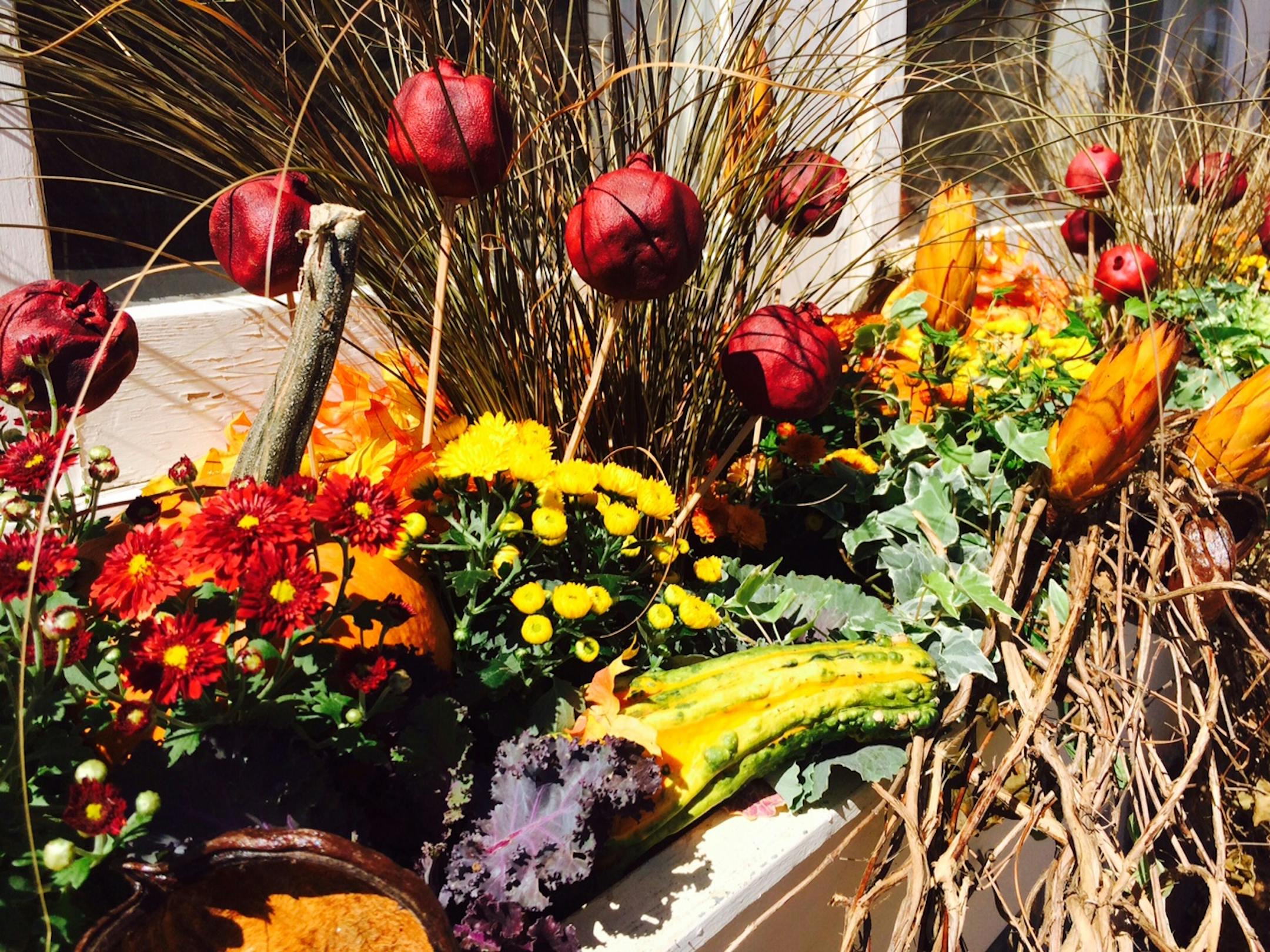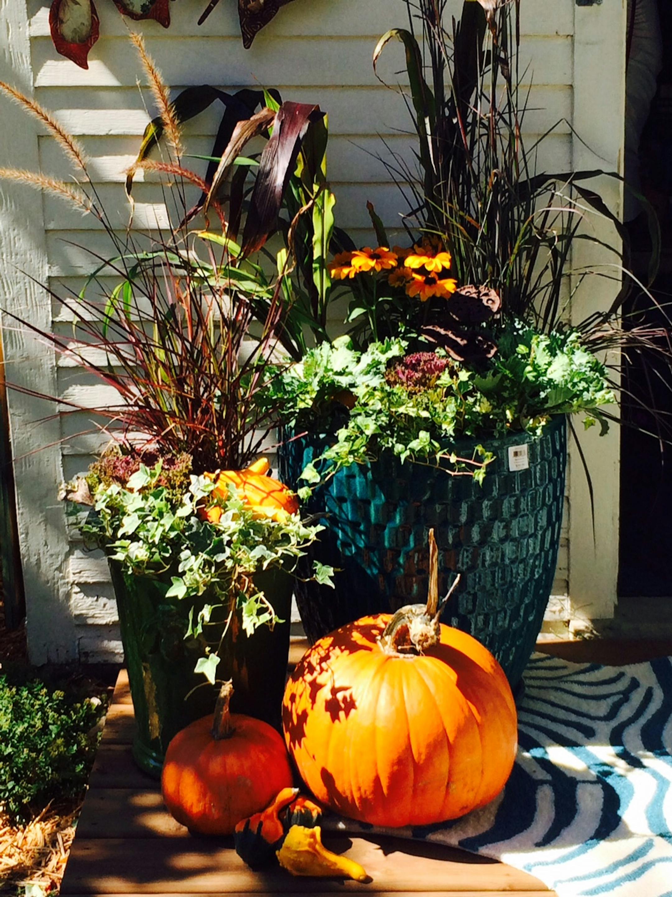 Susie Bachman, a company V.P., suggested mixing dried, artificial and live plants in your fall-flavored pots.