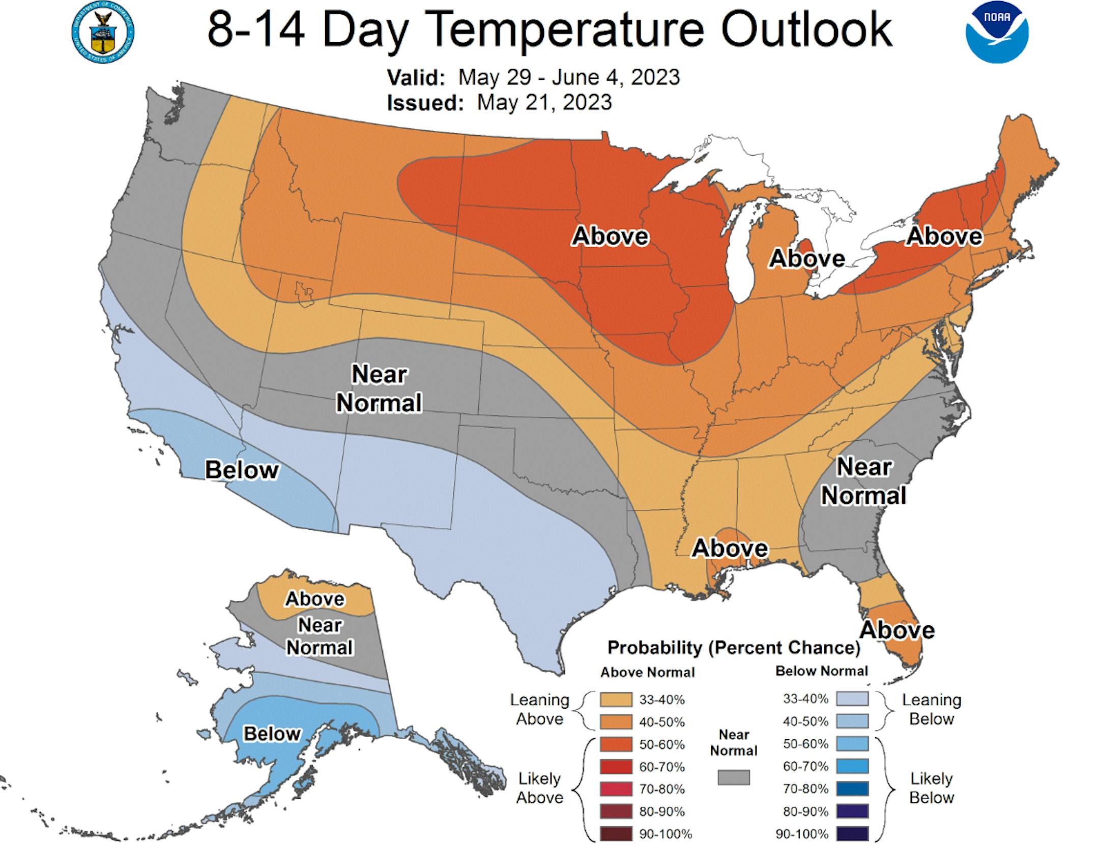 Temperatures will be very mild as we start out the week with readings warming to near 80F, which will be nearly +10F above average for late May. We'll see a slight cooldown midweek with readings back to near normal in the low/mid 70s, which will still be quite enjoyable. A gradual warming trend takes us back to near 80F later this week and the weekend ahead, will be nearly +10F above average.