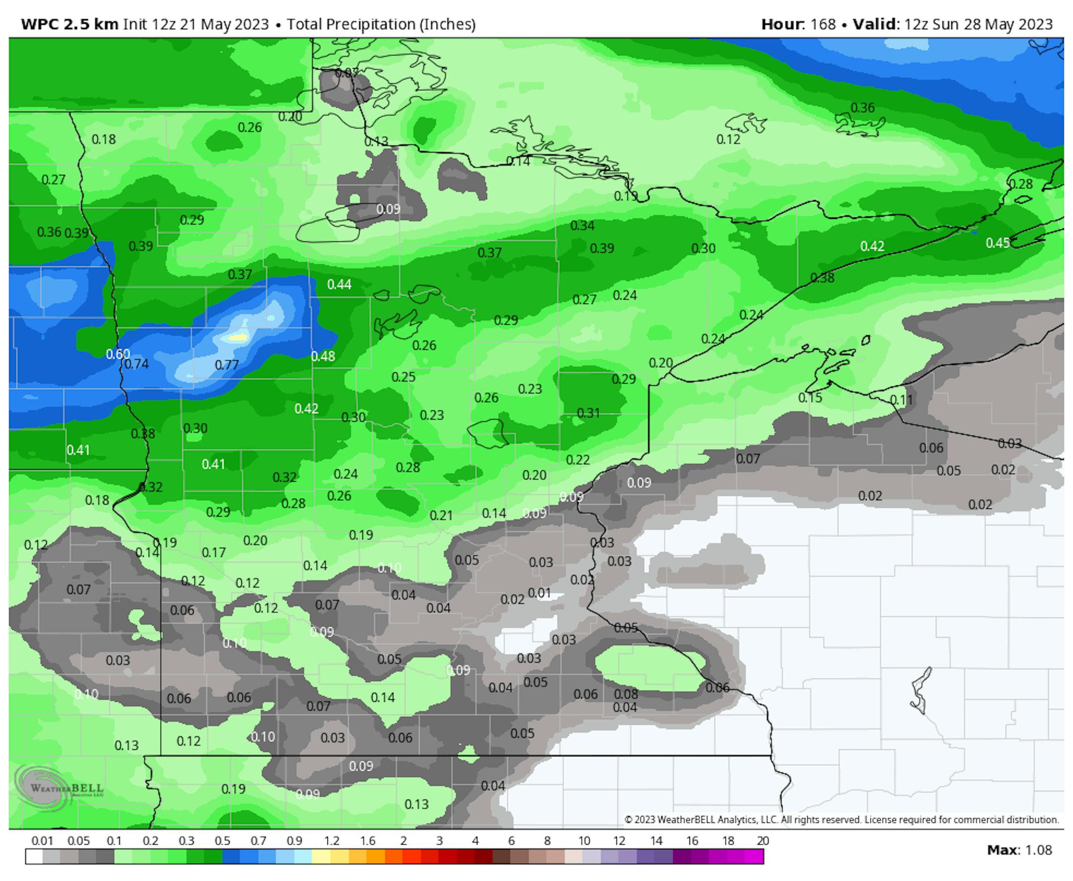 The precipitation outlook into the upcoming week doesn't appear to be all that impressive with some locations seeing 0.25" to 0.50" tallies in the western part of the state. The heavier amounts of up to 0.75" will be found closer to northwestern. Stay tuned...
