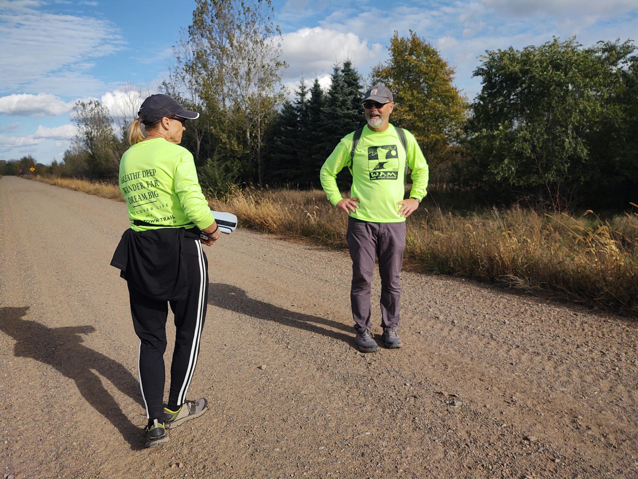 The Hoffs’ walk isn’t as ambitious, but it has its own appeal. A chance to see Minnesota on foot, to slow down and notice things, to connect with fellow Minnesotans. To power yourself up hills and through all kinds of weather, to lose the comfort and protection a vehicle provides but gain the physical memory of the landscape.