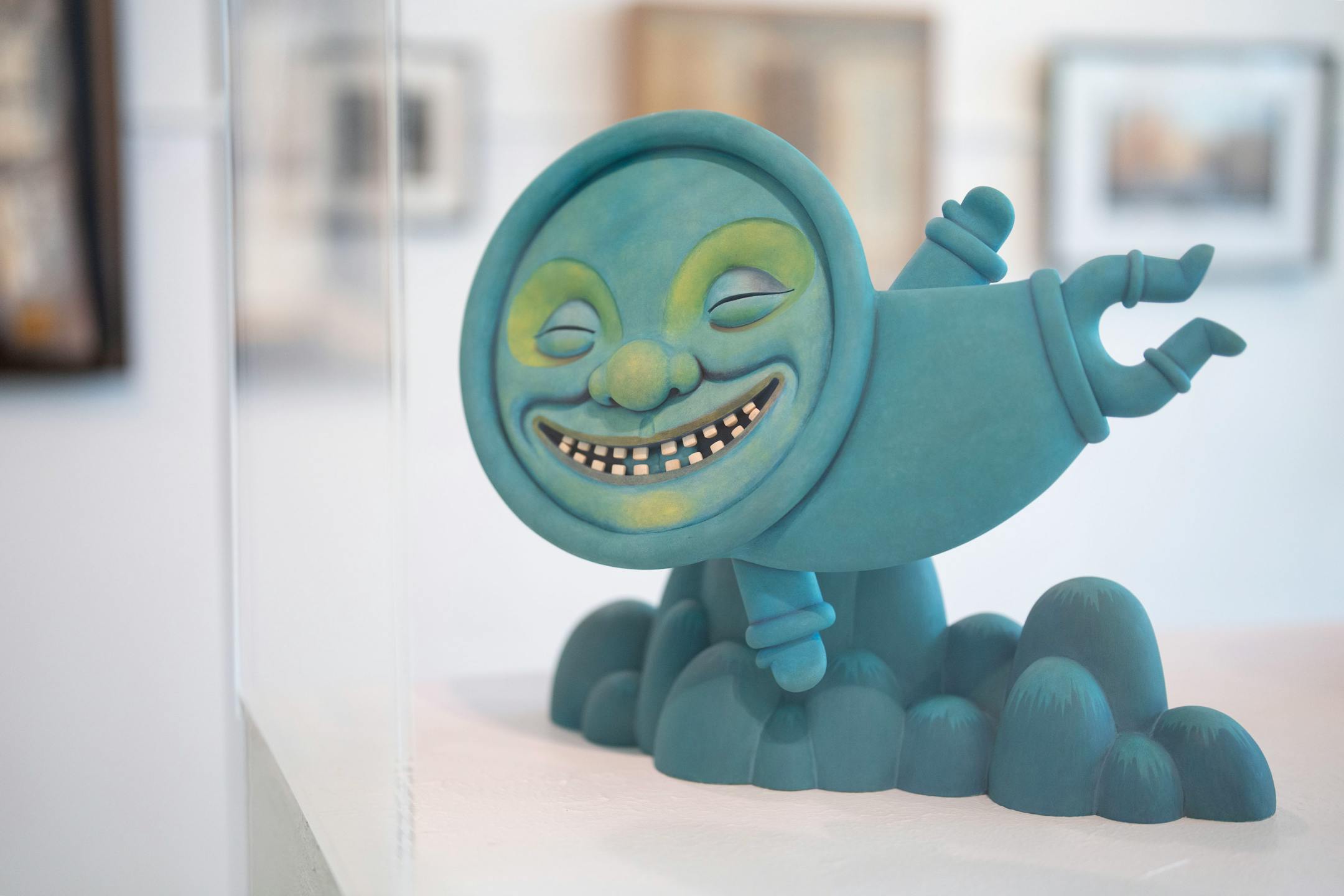 This character looks like something from a Maurice Sendak picture book or a dystopian cartoon smiling, its teeth contrasting against its bluish-green colored body. In old Norse, “tunglskin” means moonlight.