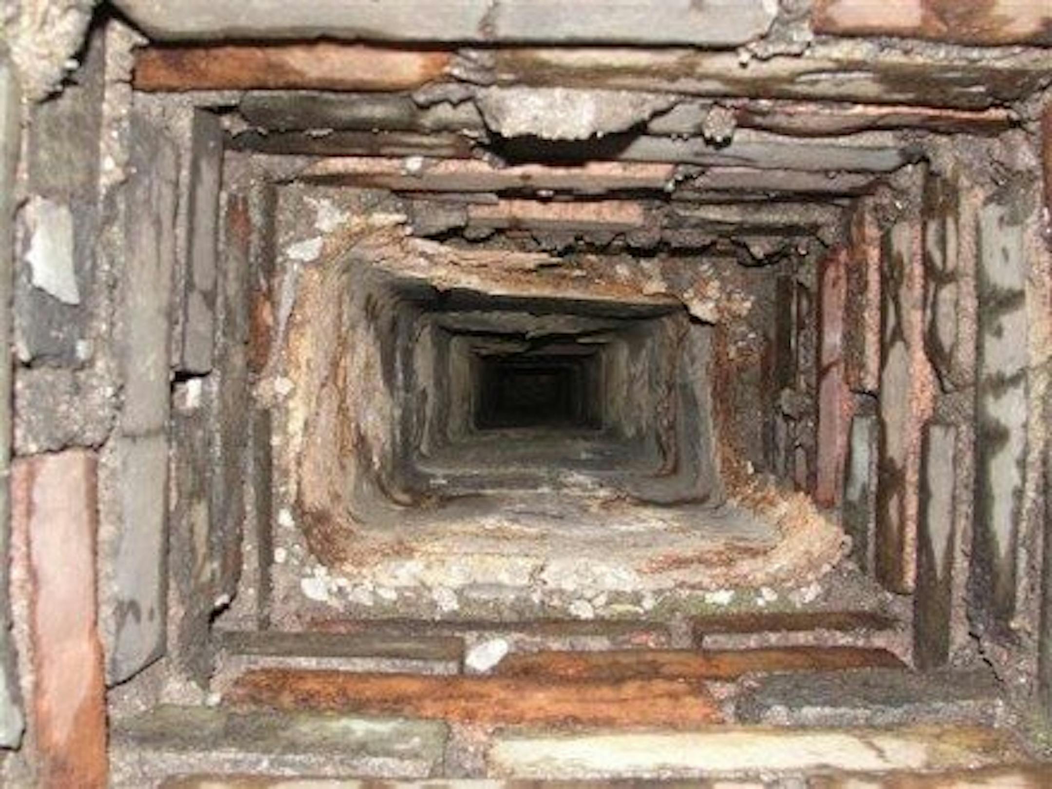Deteriorated Chimney - Flue gases from combustion appliances like furnaces and water heaters are corrosive; that's why you see a metal liner sticking out of most chimneys in Minneapolis and Saint Paul. When the appliance vents in to the chimney without a liner, the flue gases often condense near the top and then drip down and destroy the inside of the chimney. This is also just one more reason why it's important for the home inspector to get on the roof whenever possible.