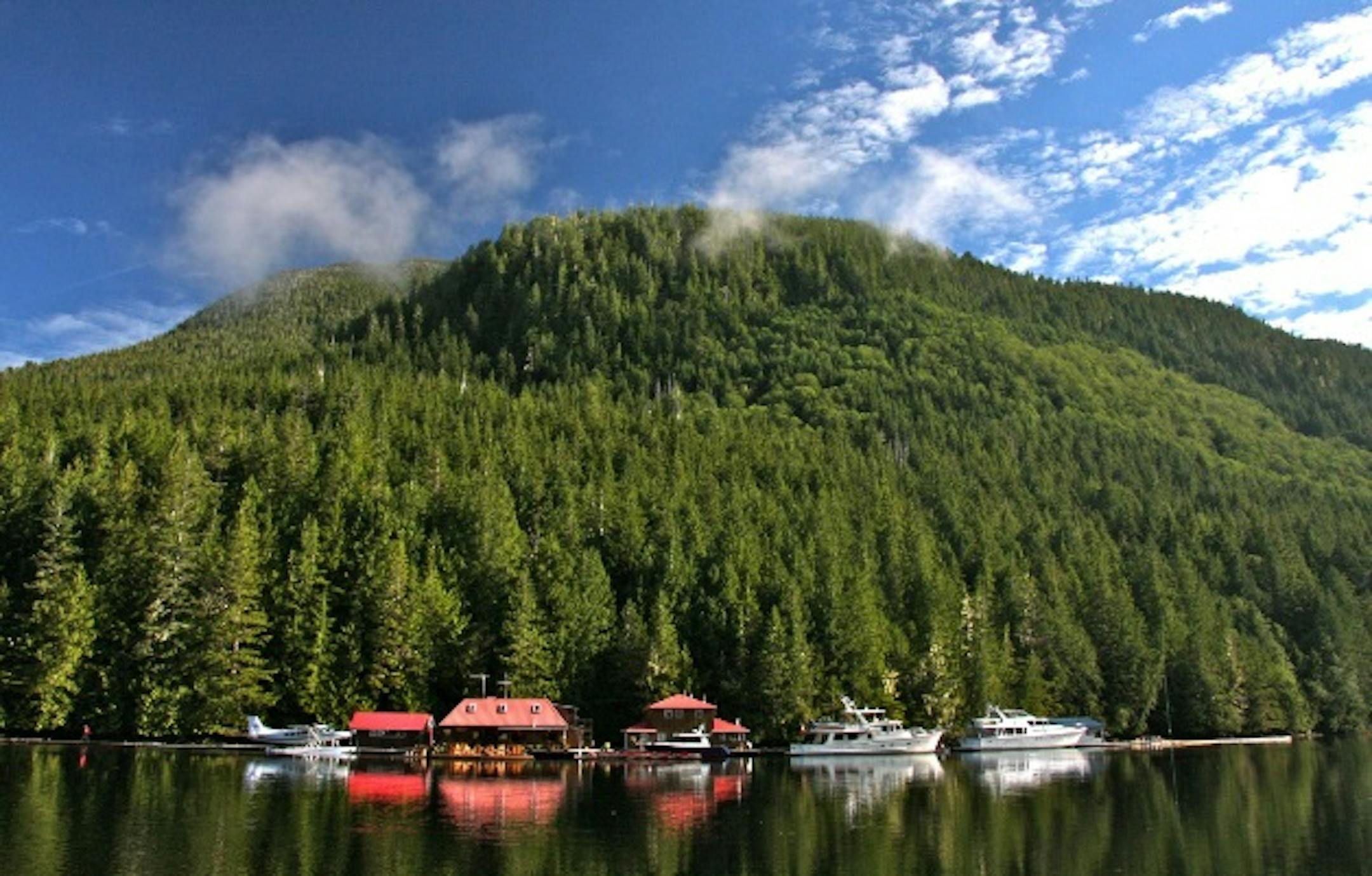 Days before boarding the aircraft, we had seemingly already explored as far into the Great Bear Rainforest as one can push––taking a small plane from Vancouver to the northern tip of Vancouver Island, then crawling into a float plane for a 20-minute flight over fjords and bays until landing on a floating dock at Nimmo Bay Wilderness Resort, which clings to the base of Mount Stephens.