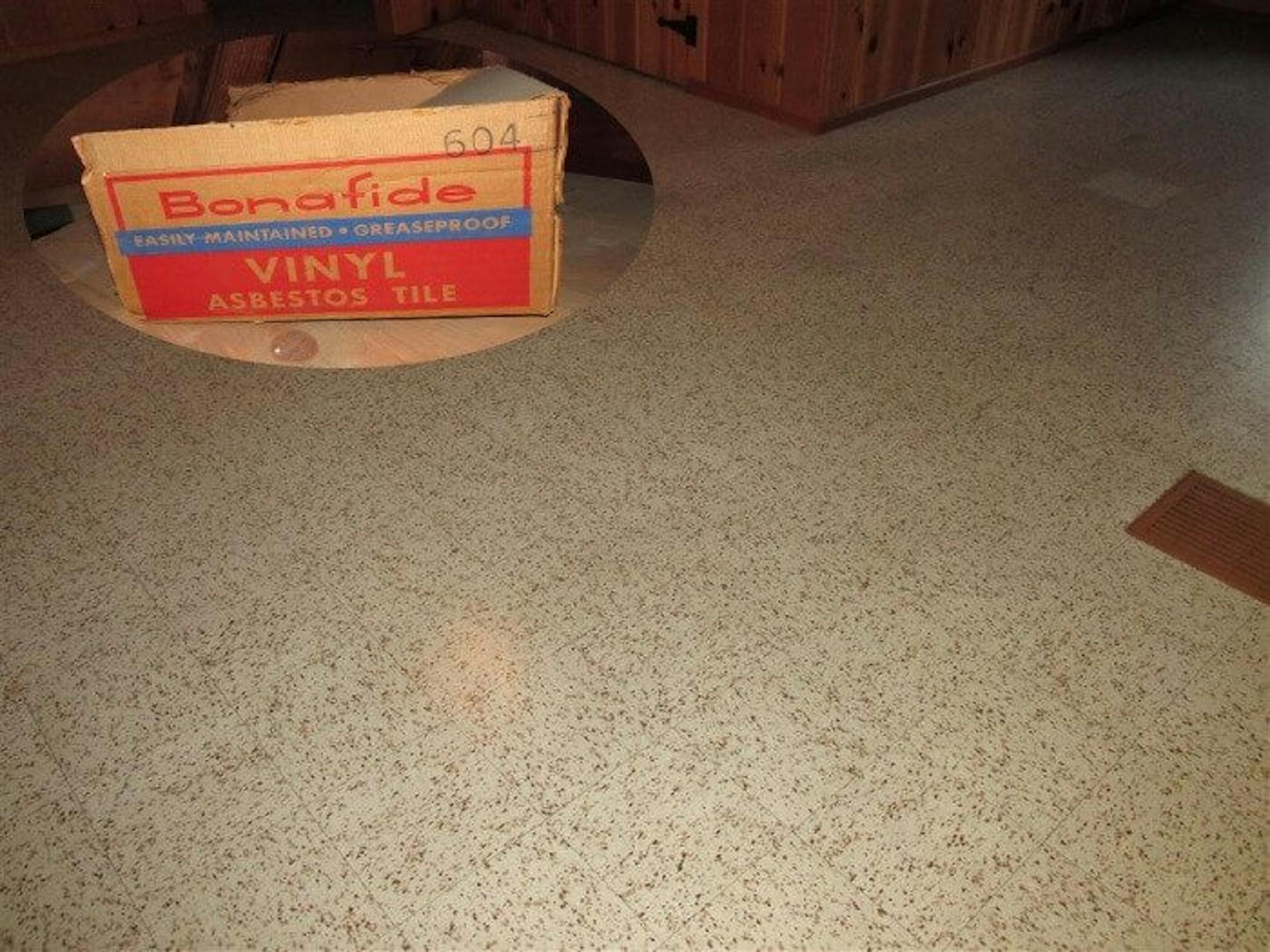 Bonafide Asbestos - how can you tell if floor tiles contain asbestos? 1. They're 9" x 9" tiles. 2. There's a box nearby saying they're bonafide vinyl asbestos tiles. While asbestos isn't considered a good thing, the actual risk created by these tiles is essentially zero, unless someone decides to take a belt sander to them. At any rate, what makes this so cool is that they still had the box!