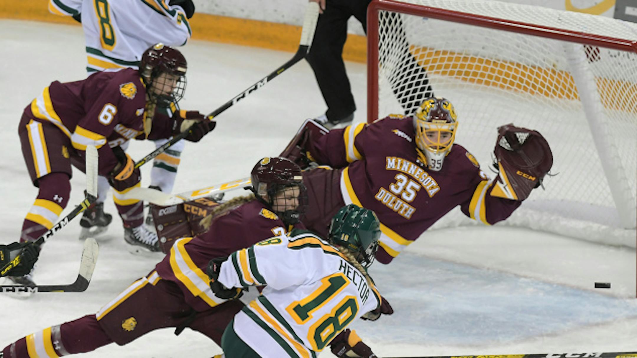 The Bulldogs have received supplementary scoring from senior forward Sydney Brodt (four goals, eight assists) and junior defenseman Ashton Bell (3-9-12). UMD is coming off a series at Ohio State in which it lost 3-1 in the opener before earning a 1-1 tie in the finale before the Buckeyes secured the extra conference standings point by winning the shootout.