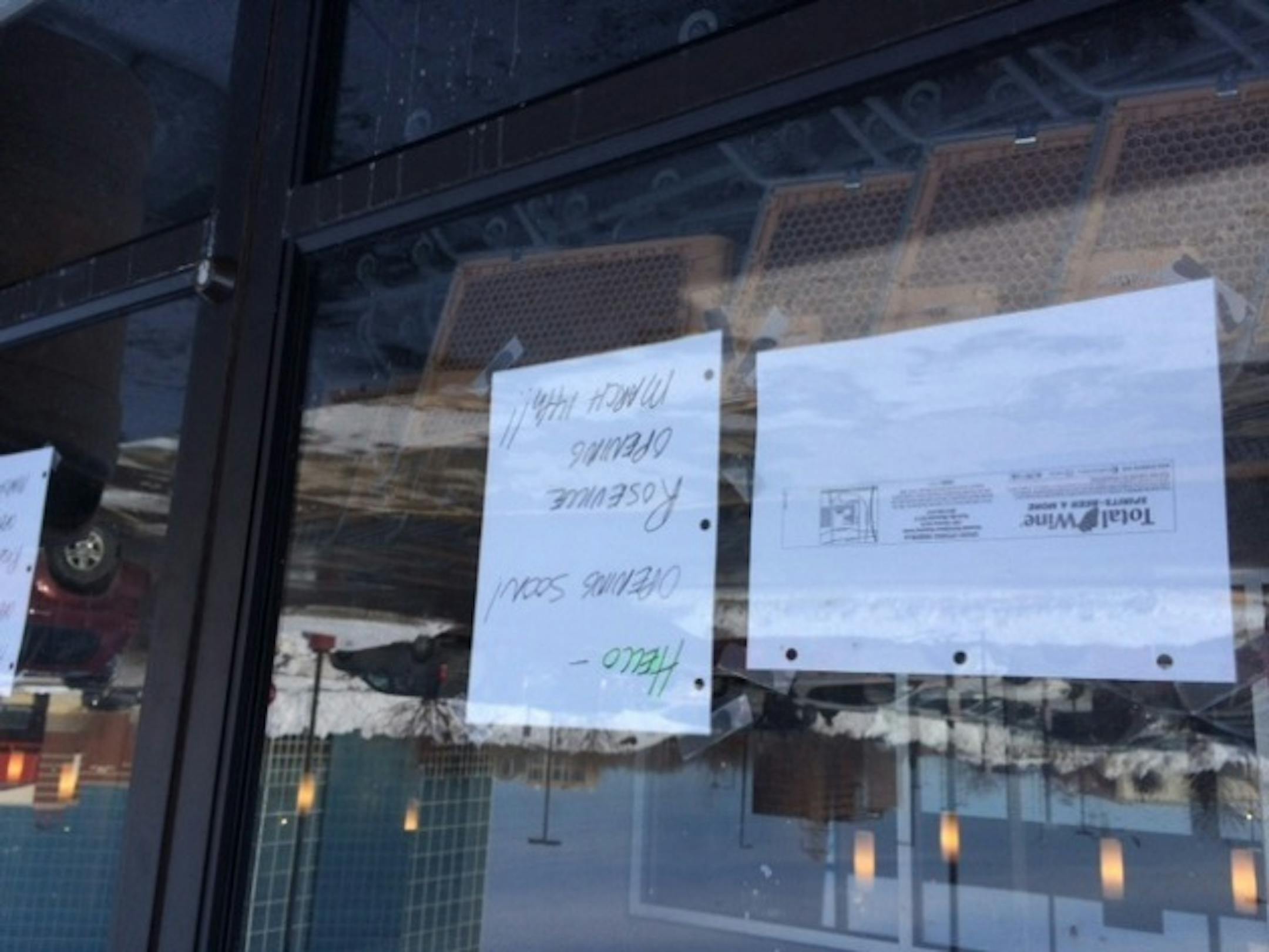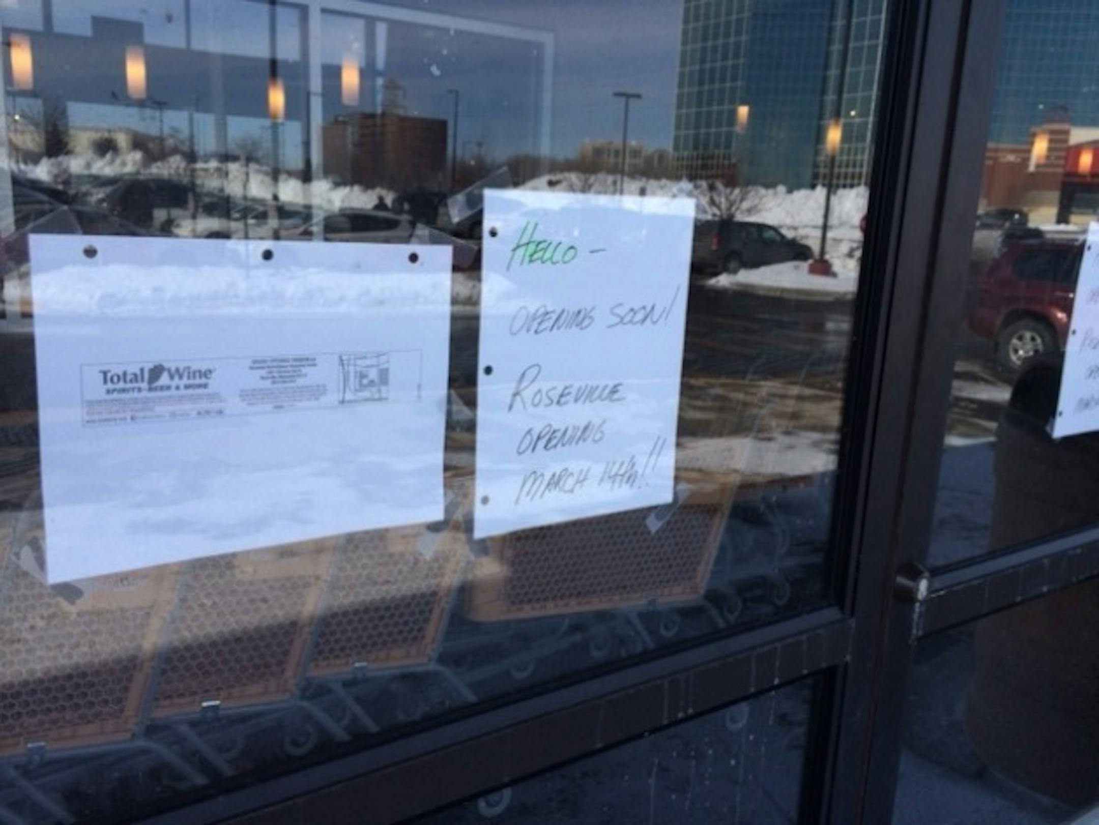 sign on the door at Total WIne in Bloomington says "March 14" is the opening date.