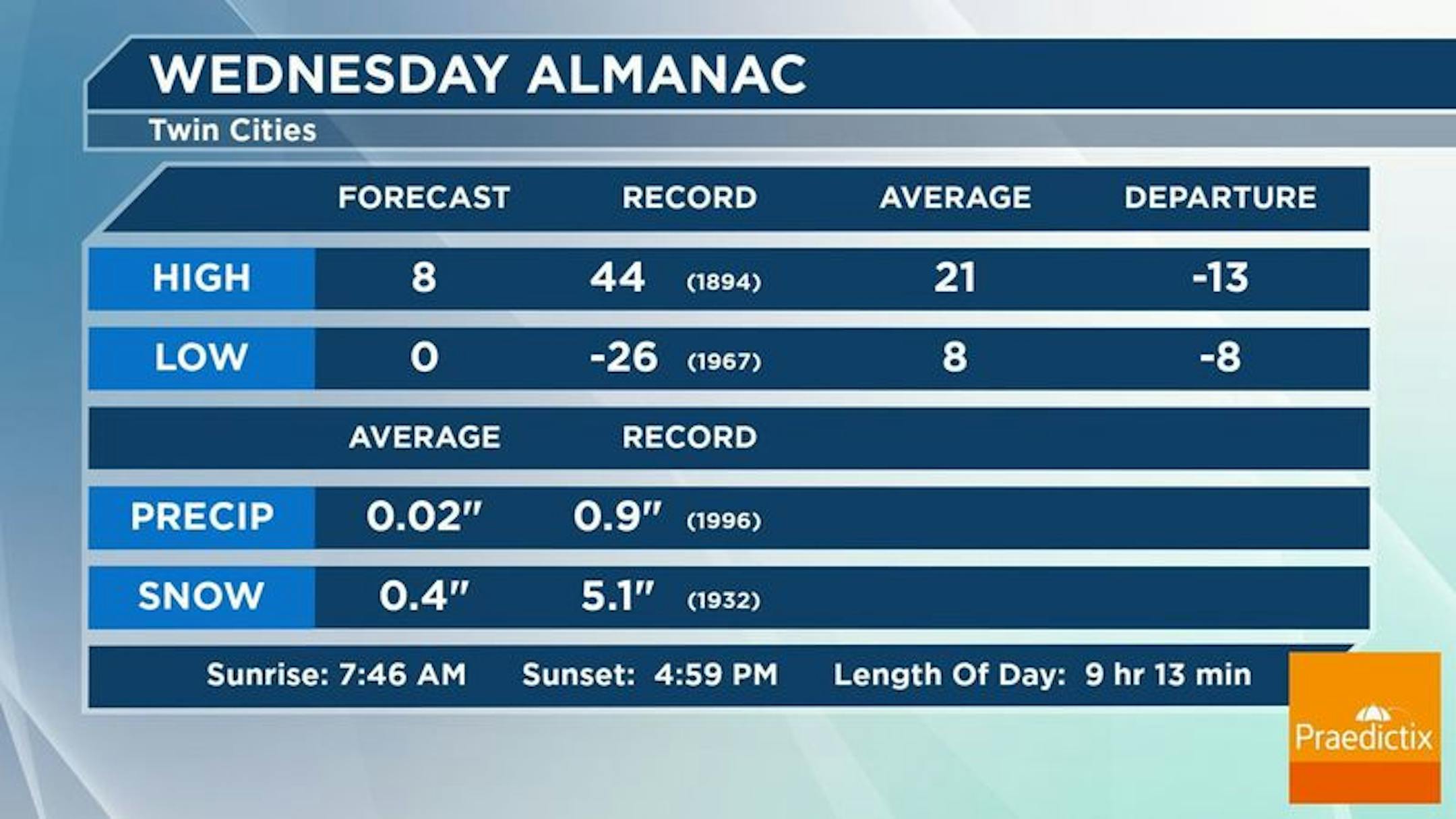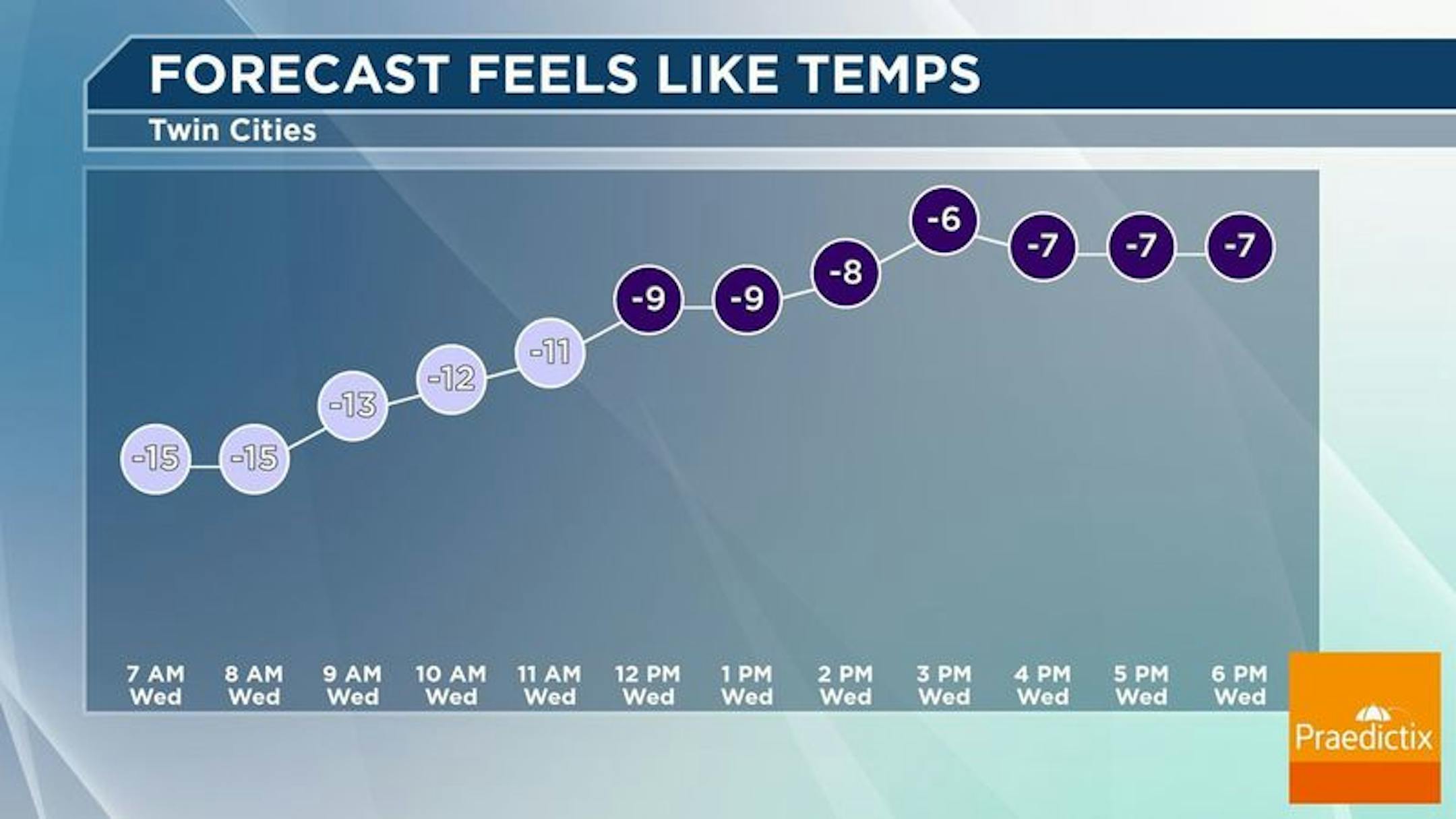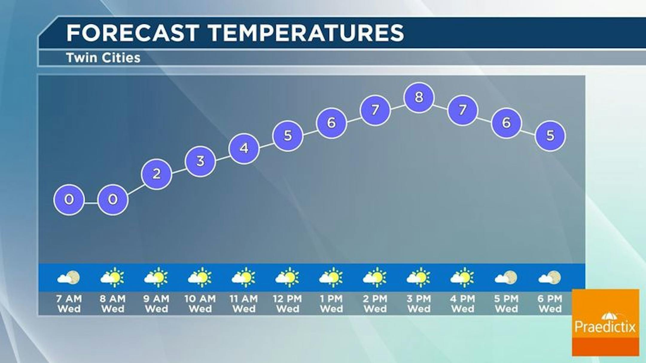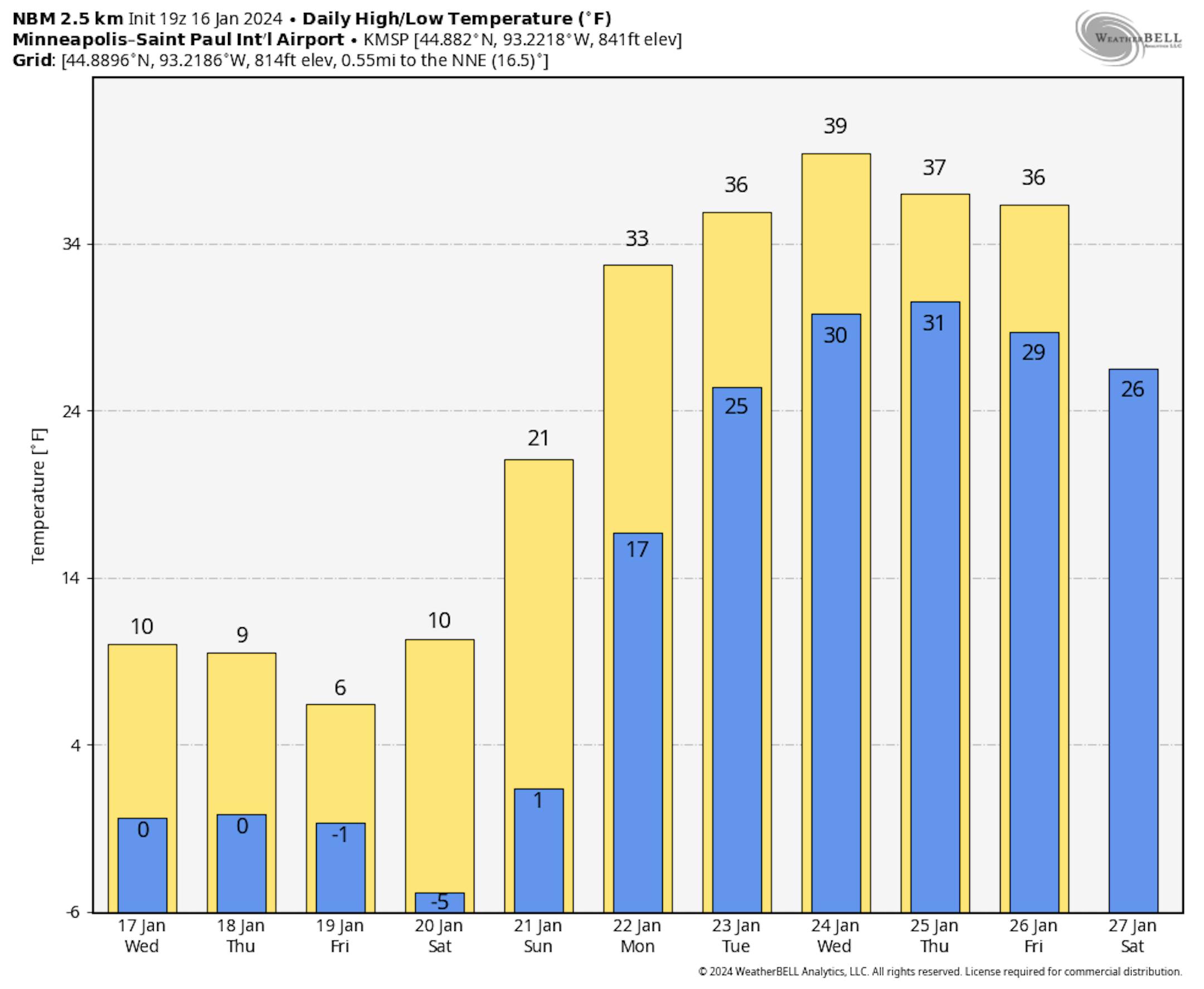 Temps in the Twin Cities over the next several days will continue to see very cold temps with readings running well below average for this time of the year. As we approach the weekend and into next week, we'll see a pretty dramatic shift toward warmer temps once again.