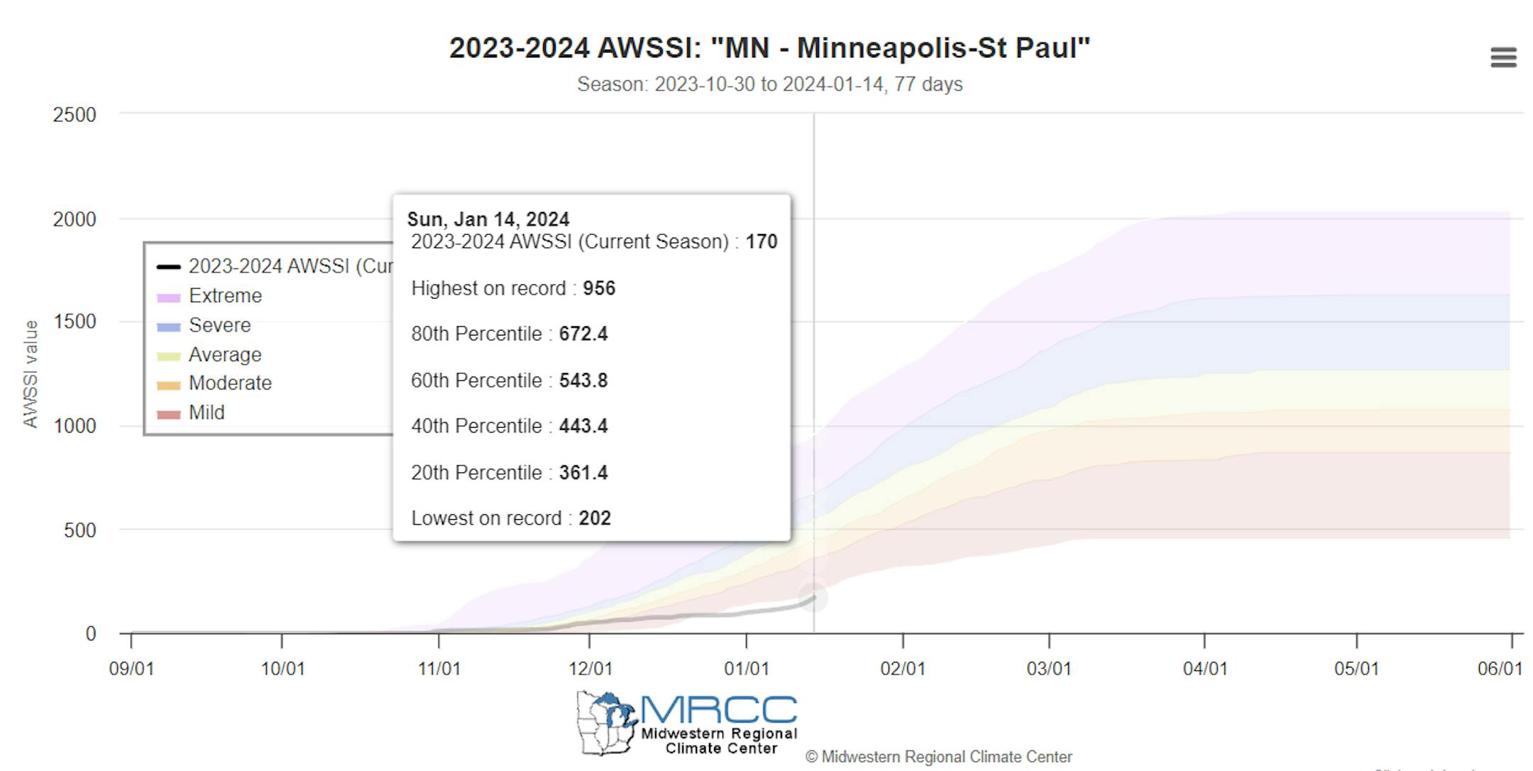 "Winter seasons have significant societal impacts across all sectors ranging from direct human health and mortality to commerce, transportation, and education. The question "How severe was this winter?" does not have a simple answer. At the very least, the severity of a winter is related to the intensity and persistence of cold weather, the amount of snow, and the amount and persistence of snow on the ground. The Accumulated Winter Season Severity Index (AWSSI) was developed to objectively quantify and describe the relative severity of the winter season."