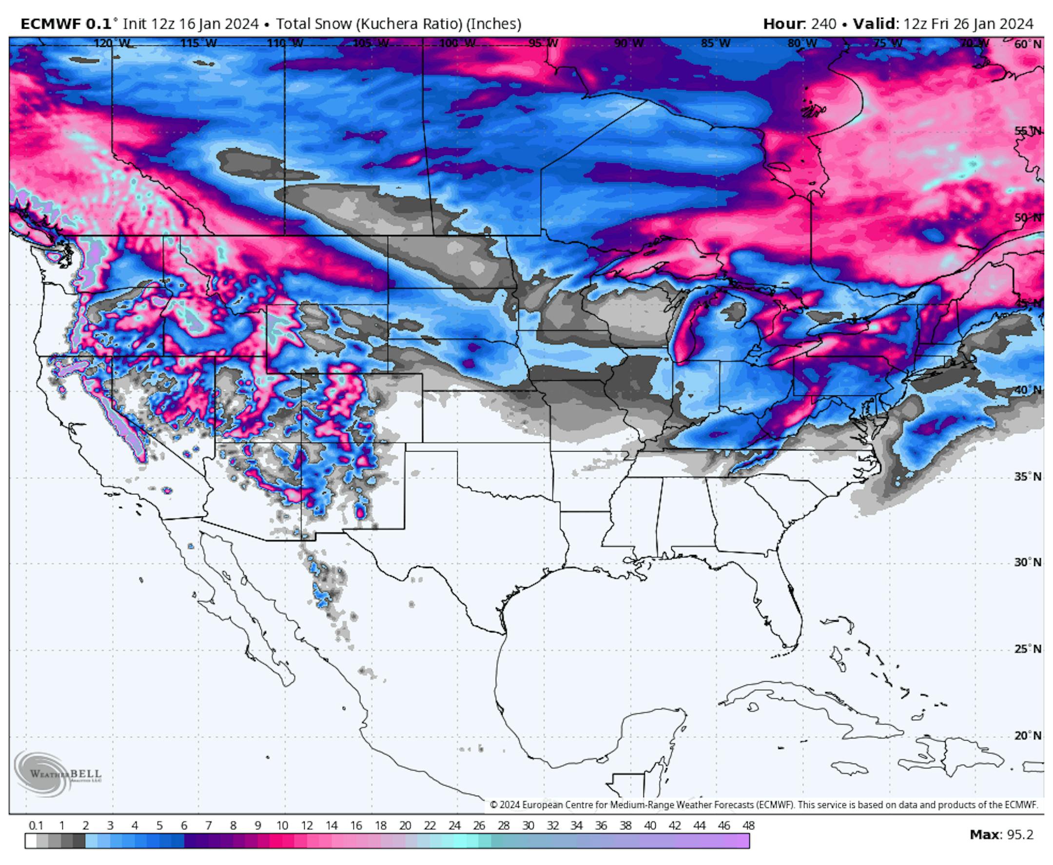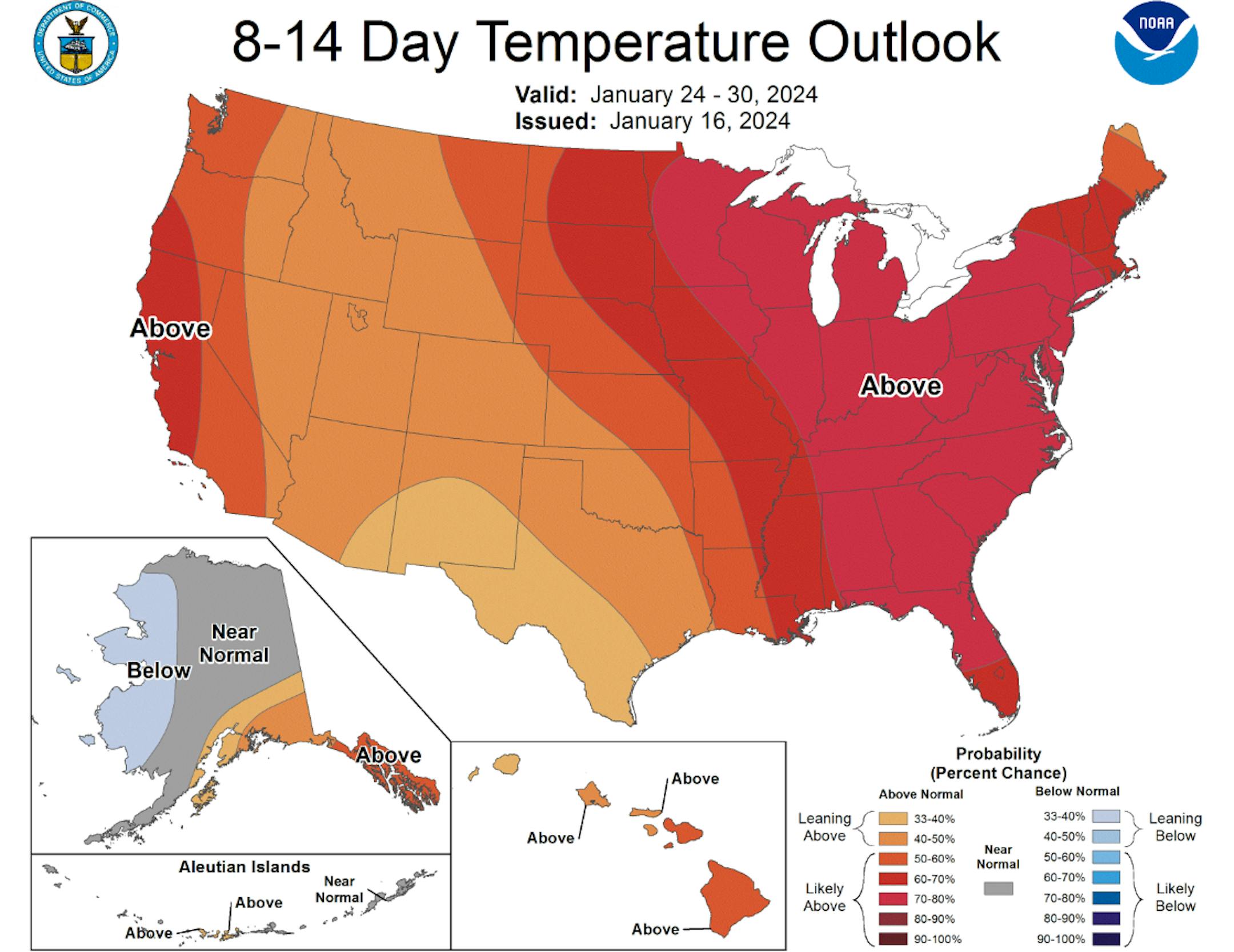 Despite the colder than average weather as of late, January Temperatures are running nearly +3.5F above average with snowfall running more than -3.5" below average. As we approach the back half of January, it looks like temperatures will return to warmer than average levels with minimal snowfall potential in the forecast.