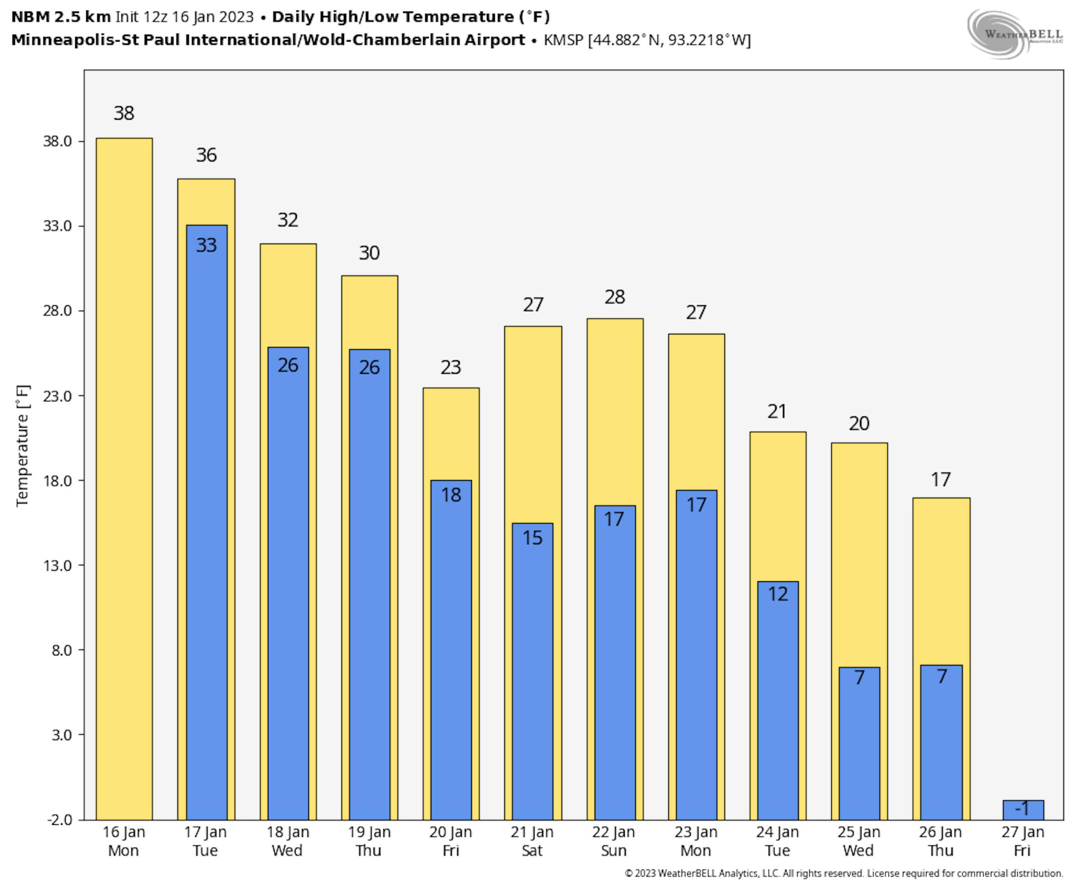 Taking a look at snowfall since July 1st, many locations have seen above average amounts so far this season, but folks from near Sioux Falls to the Twin Cities and towards Duluth are nearly 20" to 30" above average through January 15th. 48.3" of snow has fallen at the MSP Airport, which is the 4th snowiest start to any season on record.