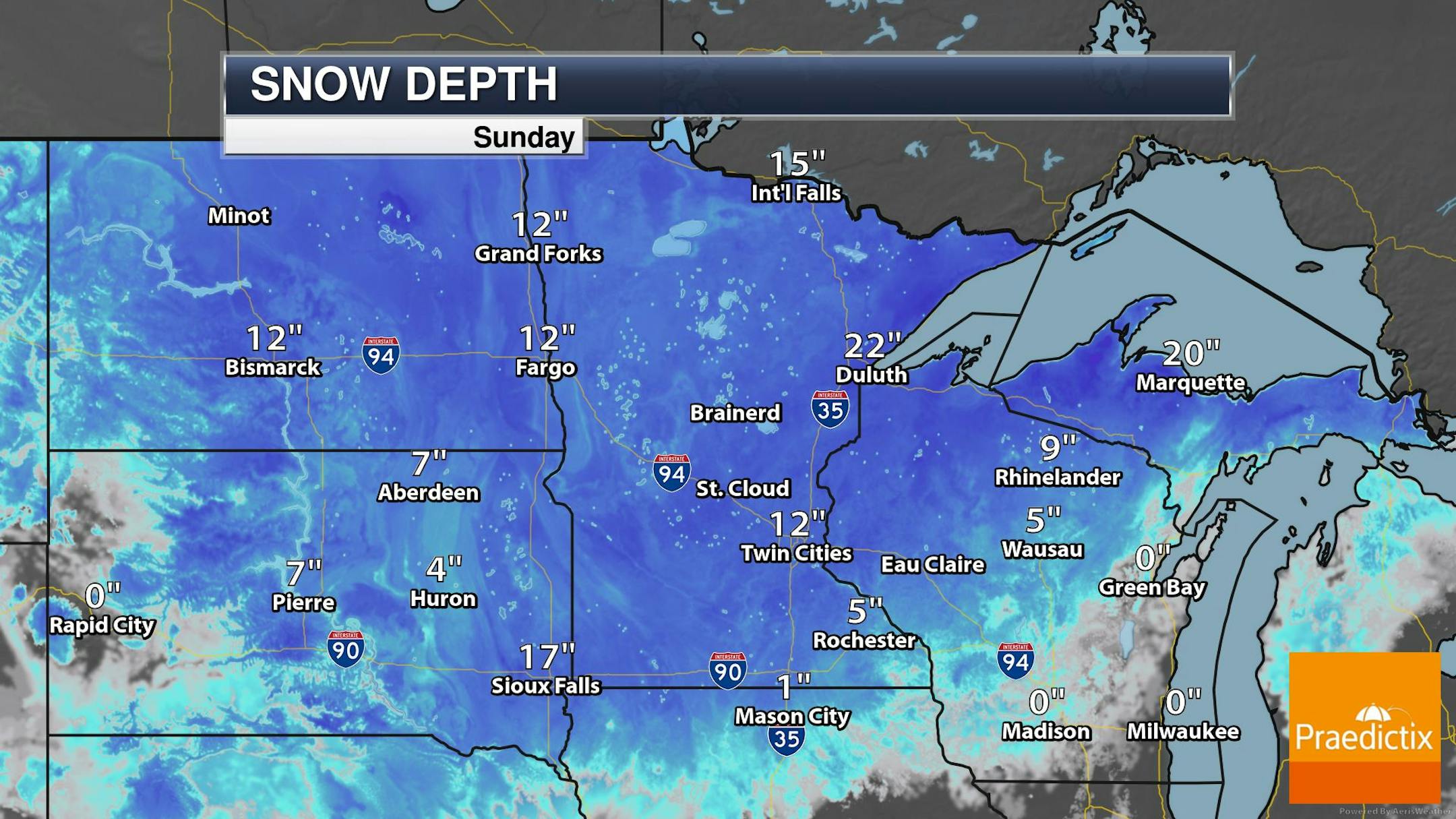 As of Sunday, January 15th, the MSP Airport recorded 12" of snow on the ground. Interestingly, this tied for the 9th greatest snow depth on record for January 13th!