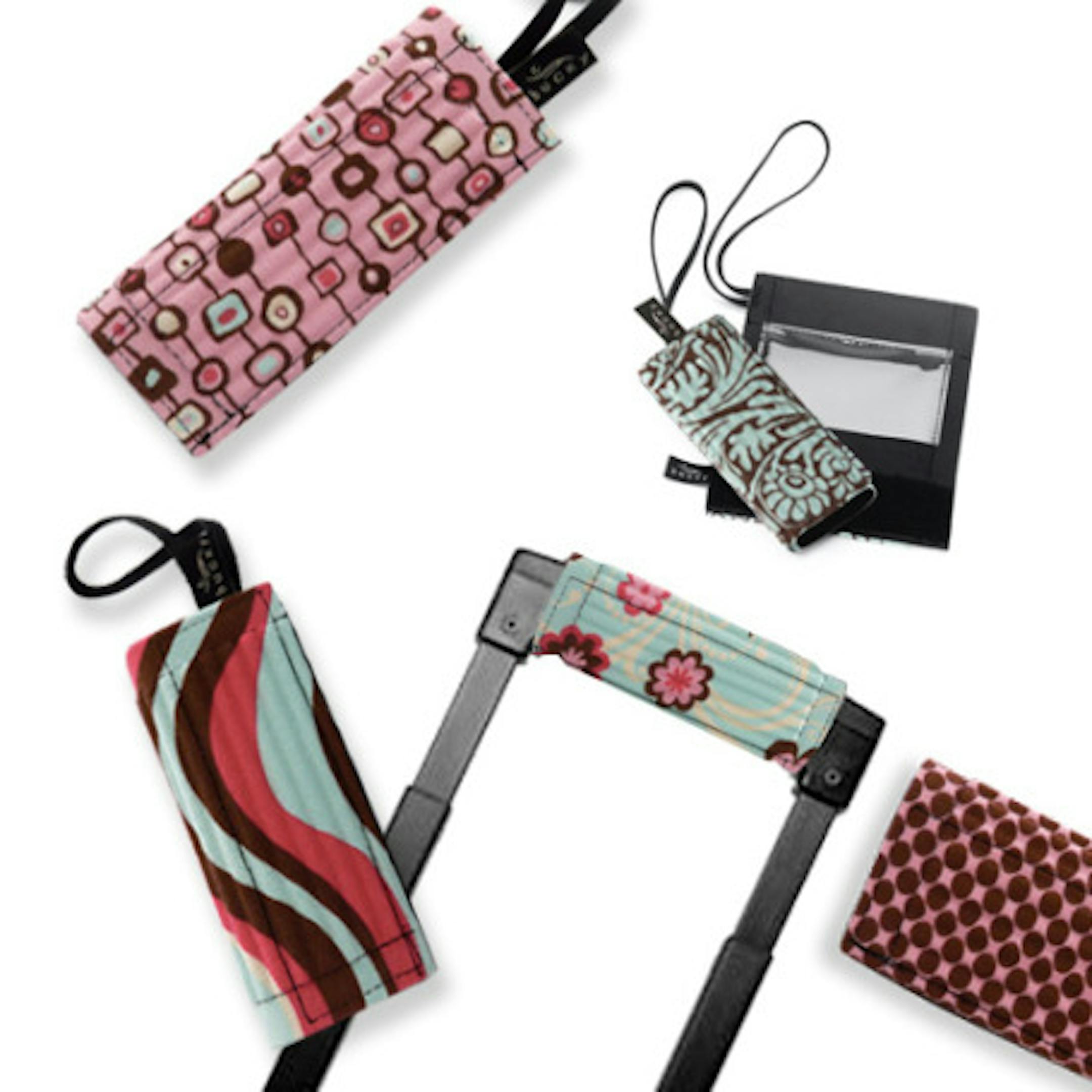 I have a standard black suitcase that essentially looks identical to many others. (I don't like seeing the black scuff marks on lighter suitcases, so I purchased a black one.) However, at the airport, it seemed like everyone else had a black suitcase too. Then, for my birthday, I received an Identigrip. Available at The Container Store and currently on sale for $4.99, these little things are perfect. I can instantly spot my luggage in a sea of black. You simply strap them to your luggage handle and viola! a unique and cute addition that saves you the hassle of checking every tag, on every bag. Although small, it's amazing how easily I can spot my bag. Photo courtesy of http://www.bucky2.com/catalog/controller.php?pg=product&product=T230.