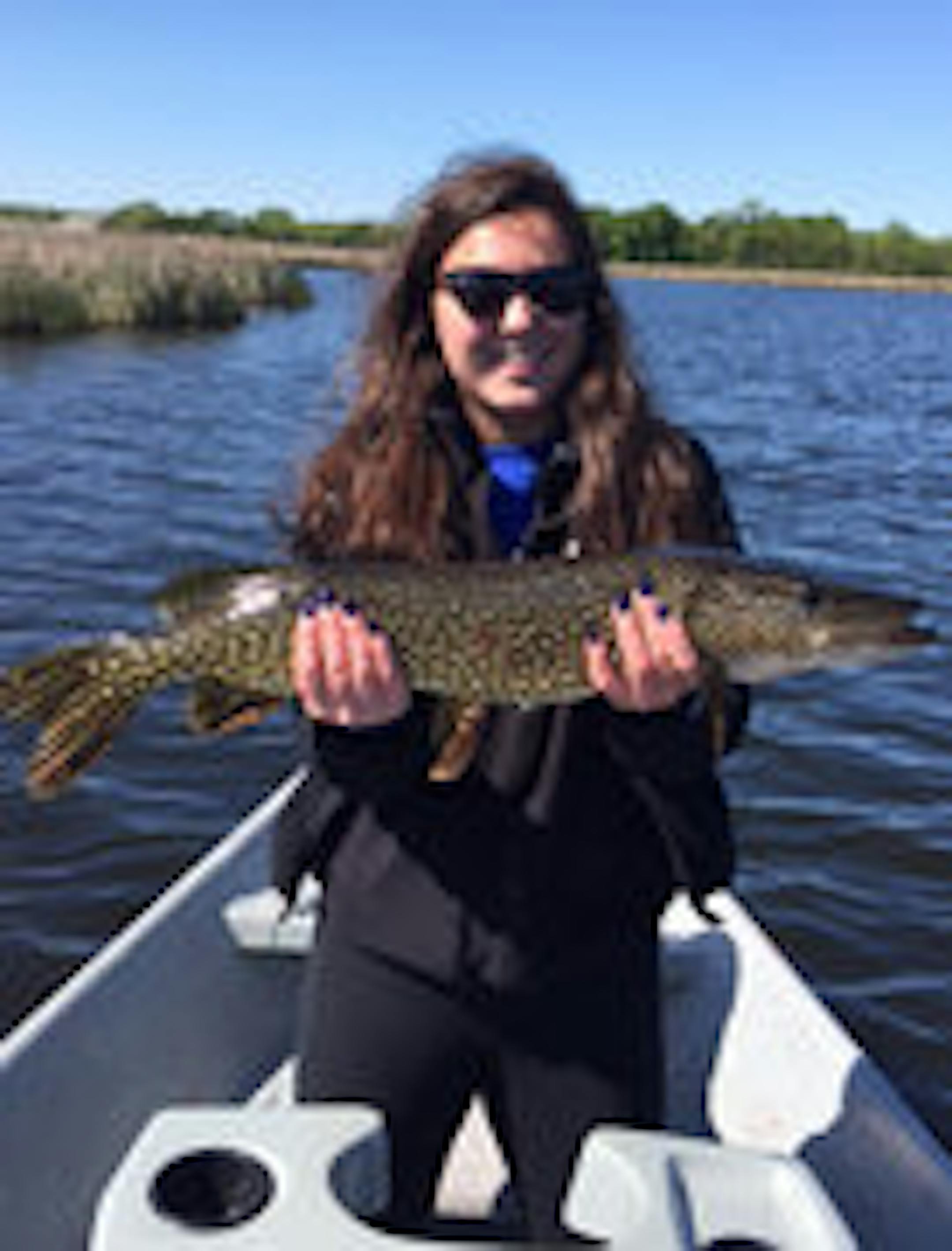 Corrie Day of Minnetrista caught this northern on opening weekend on Lake Minnetonka. It's her first fish on the lake. Day thought it was a snag, but learned that snags don't run away.