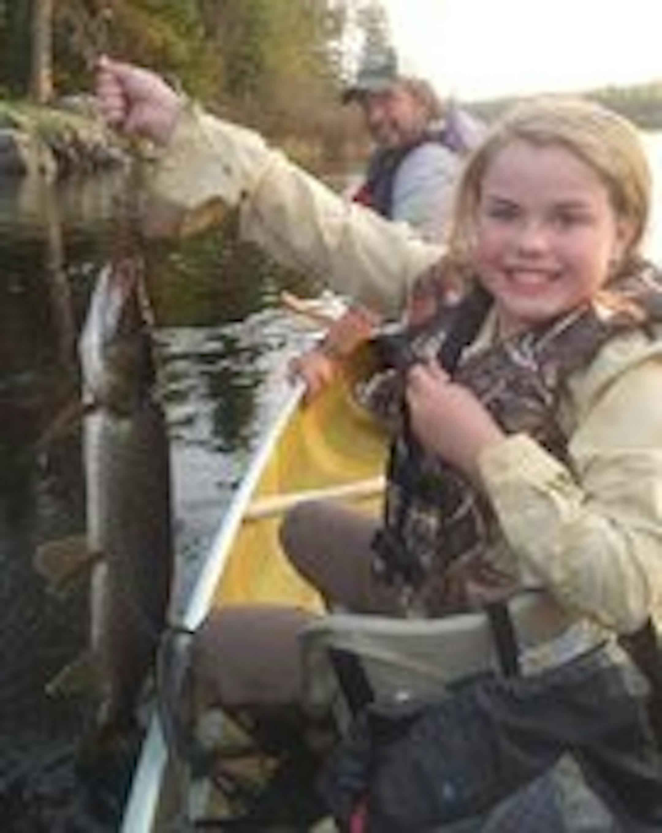 Ten-year-old Sabina Rosell of Richfield caught this northern pike in the Boundary Waters Canoe Area on a jig and a minnow. The catch, estimated to be 33 to 34 inches, was released.