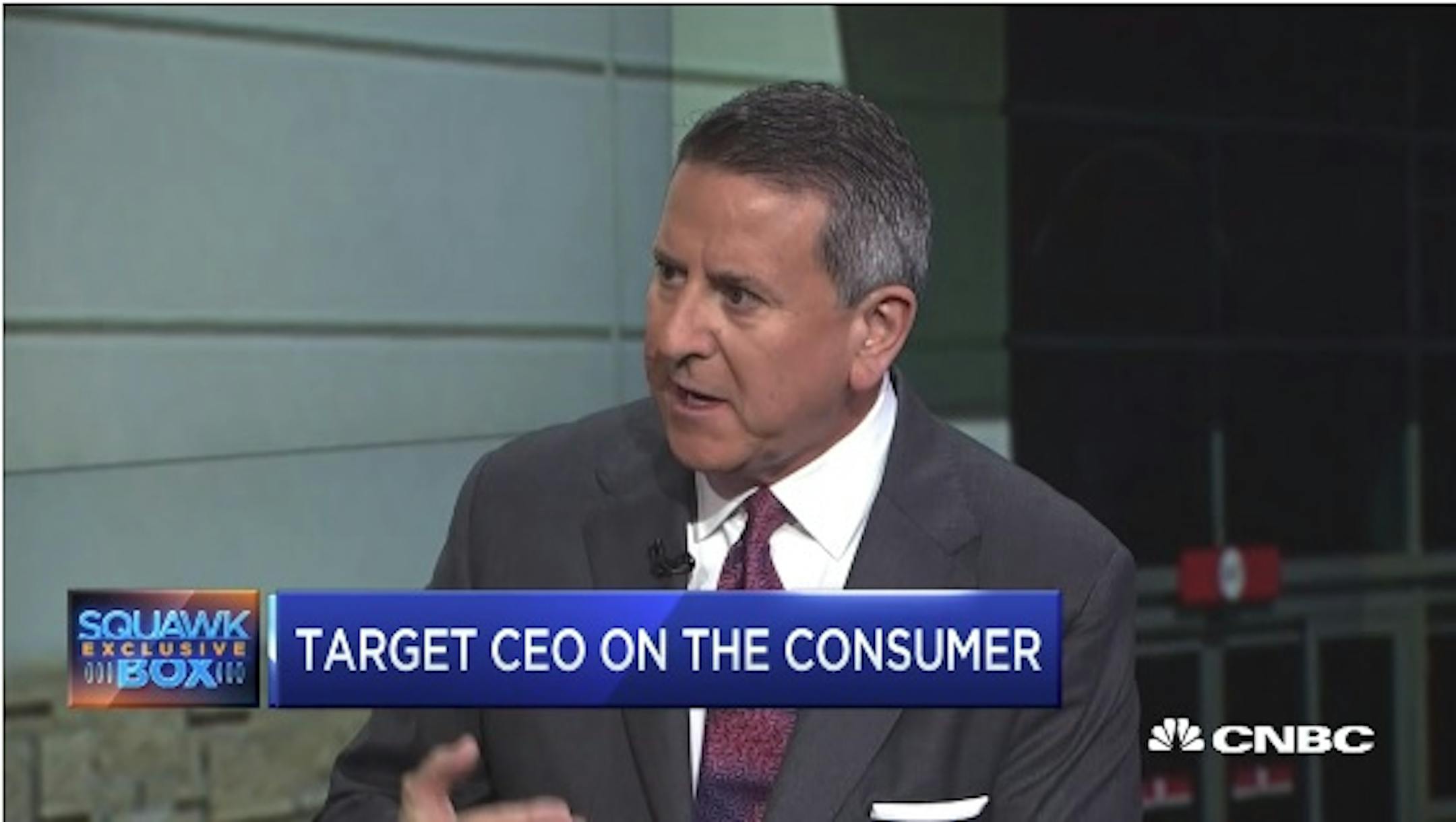 CNBC's morning "Squawk Box" show latched onto Trump's tweet and replayed comments that Target CEO Brian Cornell made on the program two days ago, the morning the company announced second-quarter results that showed the biggest jump in same-store sales in a decade. The quarter was the best since Cornell arrived as CEO four years ago. "I think this is the healthiest environment I've ever seen," Cornell said on CNBC. "But importantly for us, we are building market share in virtually every category."