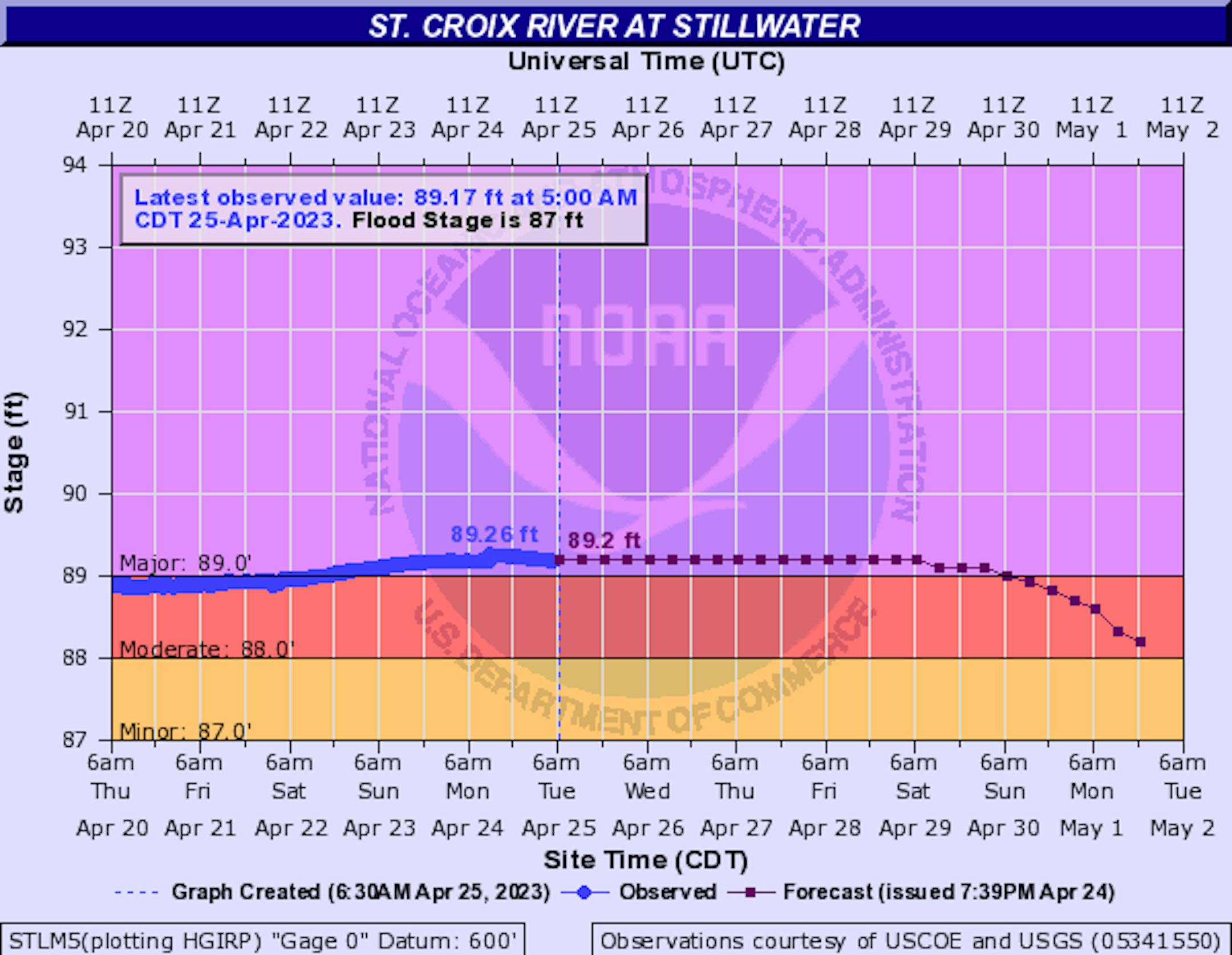 Here's the river forecast for the St. Croix River at Stillwater. Moderate flooding was ongoing for much of the last several days, but Major flooding is likely as we head through the rest of the month. Note that this could be the most significant crest since April of 2001 and could potentially be the 6th highest crest on record there! If the crest gets to 90ft, HWY 95 between Afton and Bayport begins to flood. Lakefront Park bathhouse in Hudson affected.