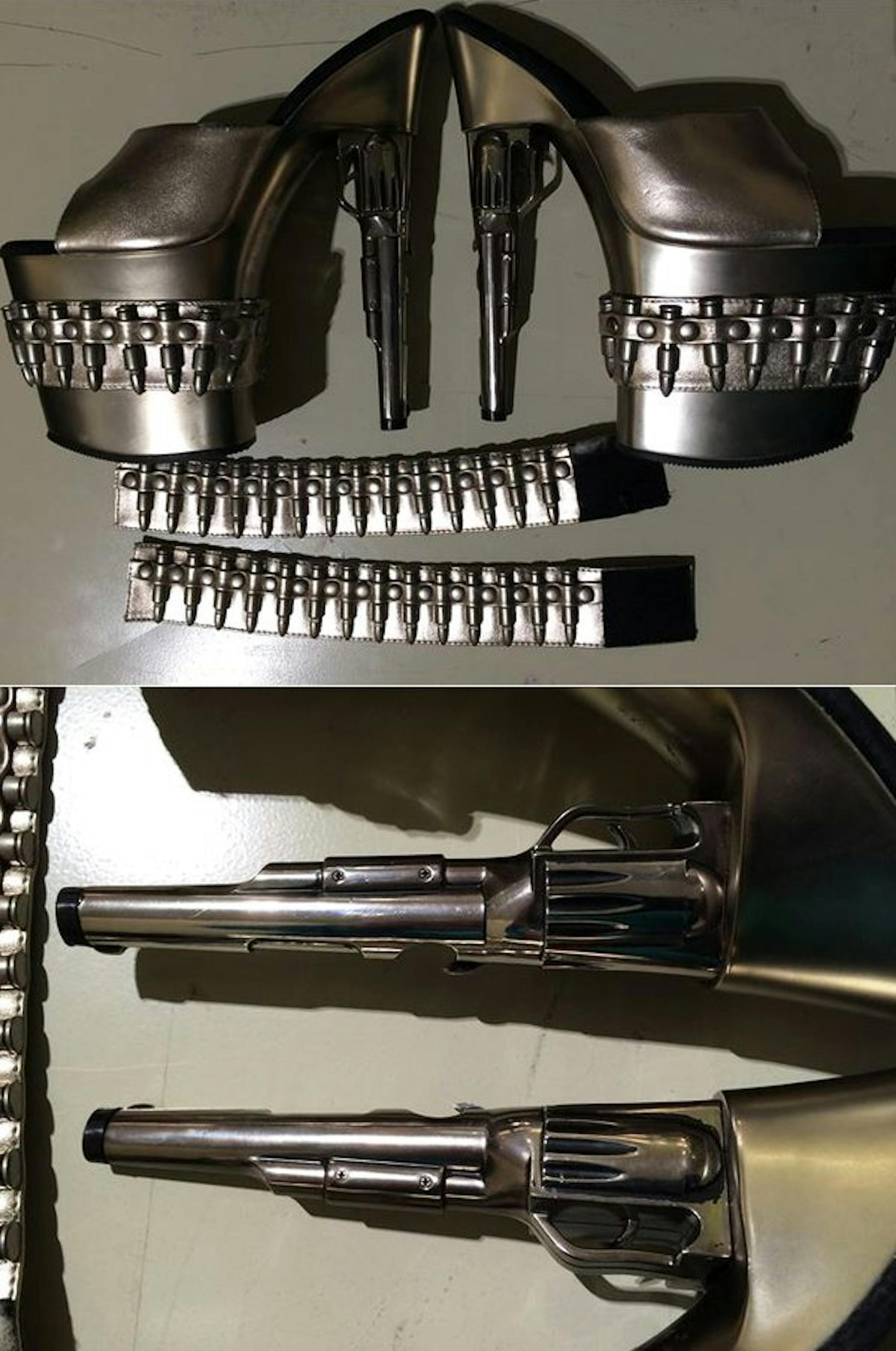Lines at Baltimore-Washington International Thurgood Marshall Airport came to a halt this week when TSA agents spotted a pair of gun-shaped stiletto heels and bullet-lined bracelets in a passenger's carry-on luggage.