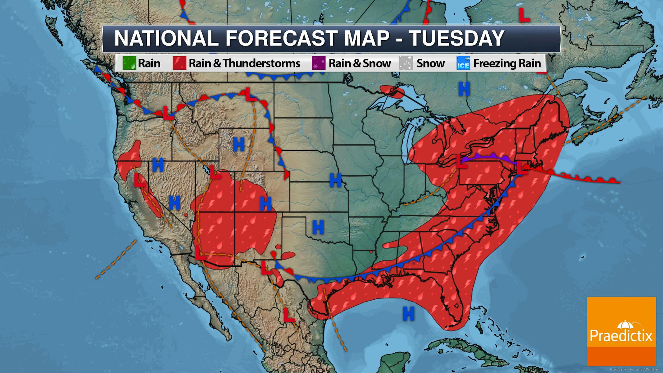 As you head out Tuesday morning, expect some fog around - potentially dense in some areas - due to the moisture we've seen the past couple of days. Otherwise, a mainly sunny day is expected with morning lows in the mid-50s and highs around average in the low 80s.