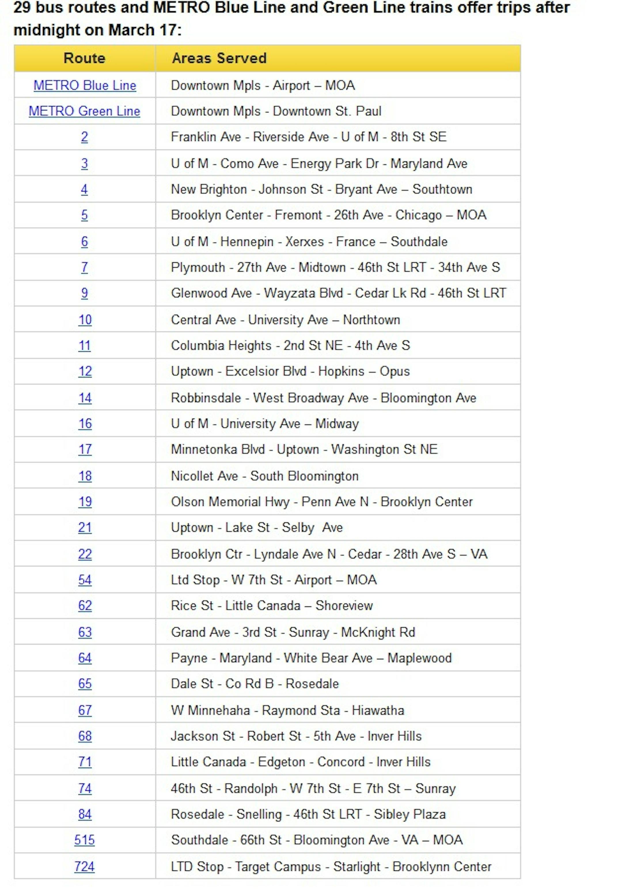 Rather than risk a ticket, taking the bus or train might be the best way to go. Rides on Metro Transit buses and trains (except Northstar), the Metro Red Line and on routes operated by the Metropolitan Council, Minnesota Valley Transit Authority, SouthWest Transit and Anoka County Traveler will be free for revelers after 6 p.m.