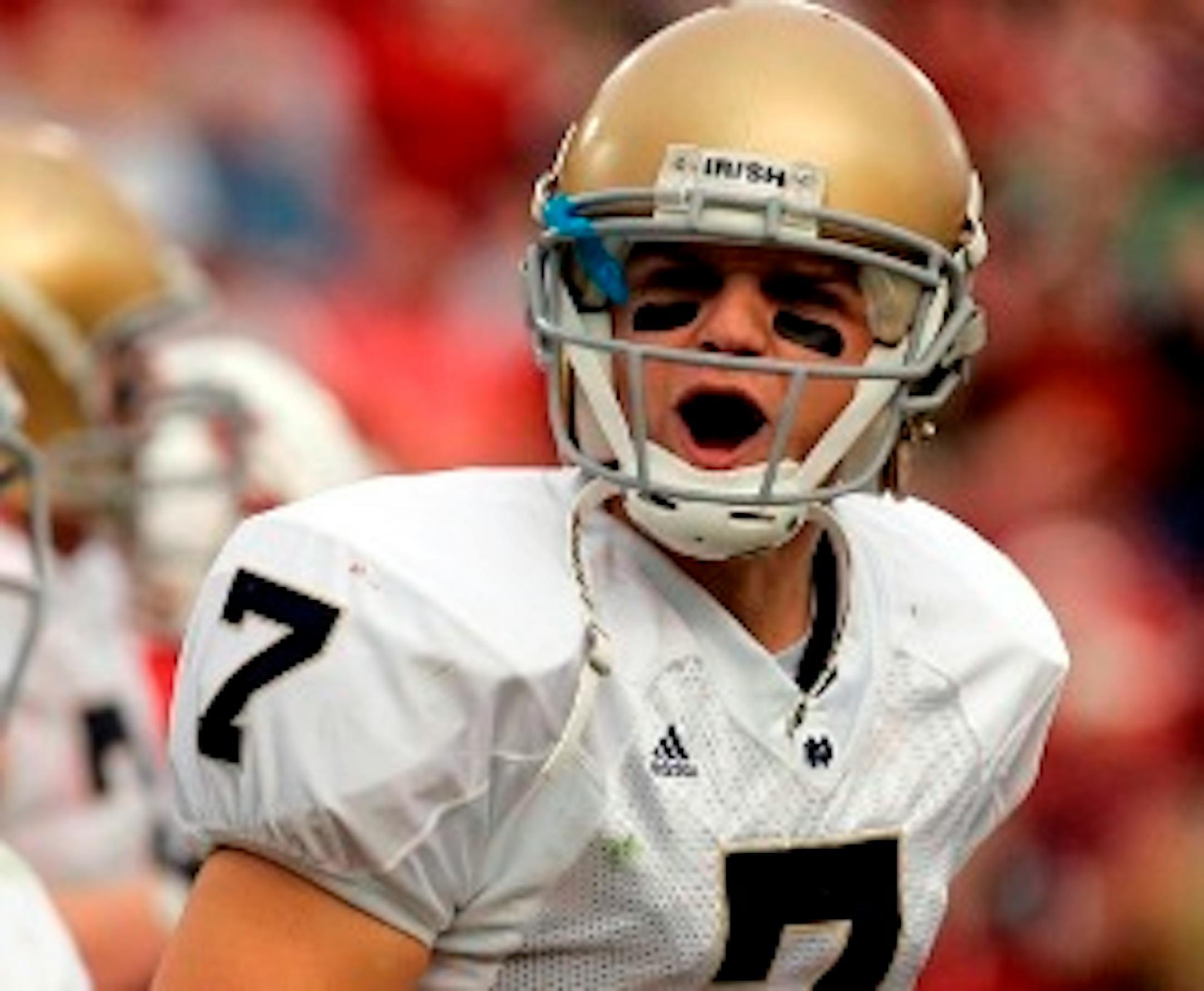 Note: That is eye black he is sporting in the picture, not a black eye. That said, sweet mercy what more could go wrong in South Bend? And how much more delighted could 80-90 percent of the sporting public be about it?