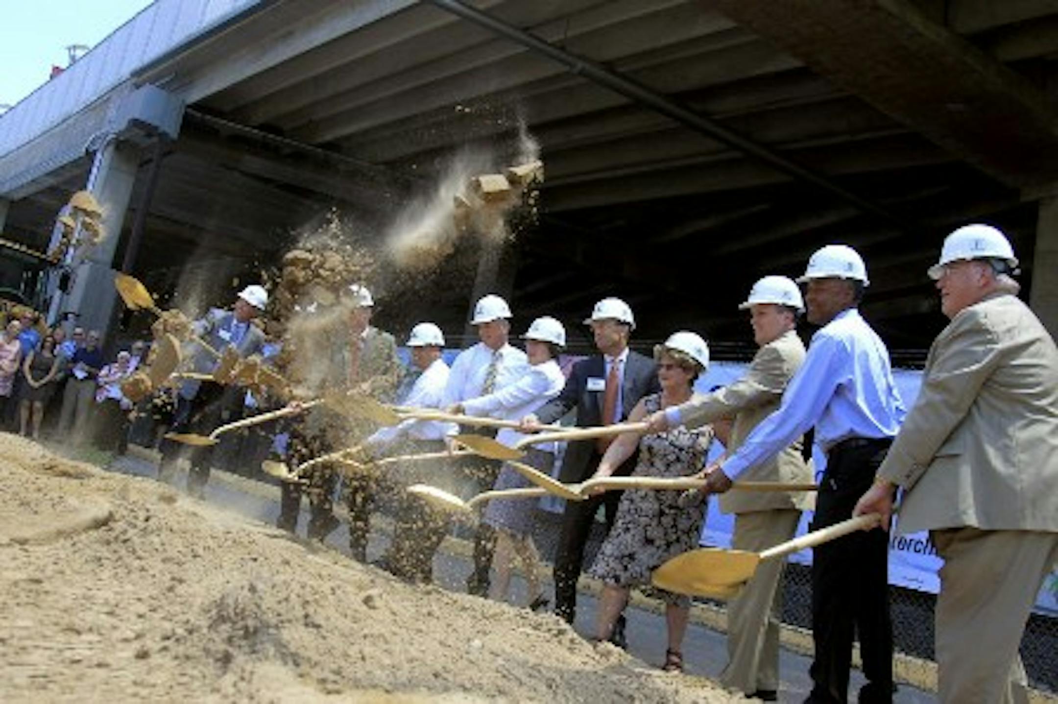 Construction begins of the new transit station: Minnesota leaders broke ground with gold shovels during groundbreaking ceremonies for the Interchange project, a transit hub that will serve light-rail, bus and commuter rail passengers near Target Field