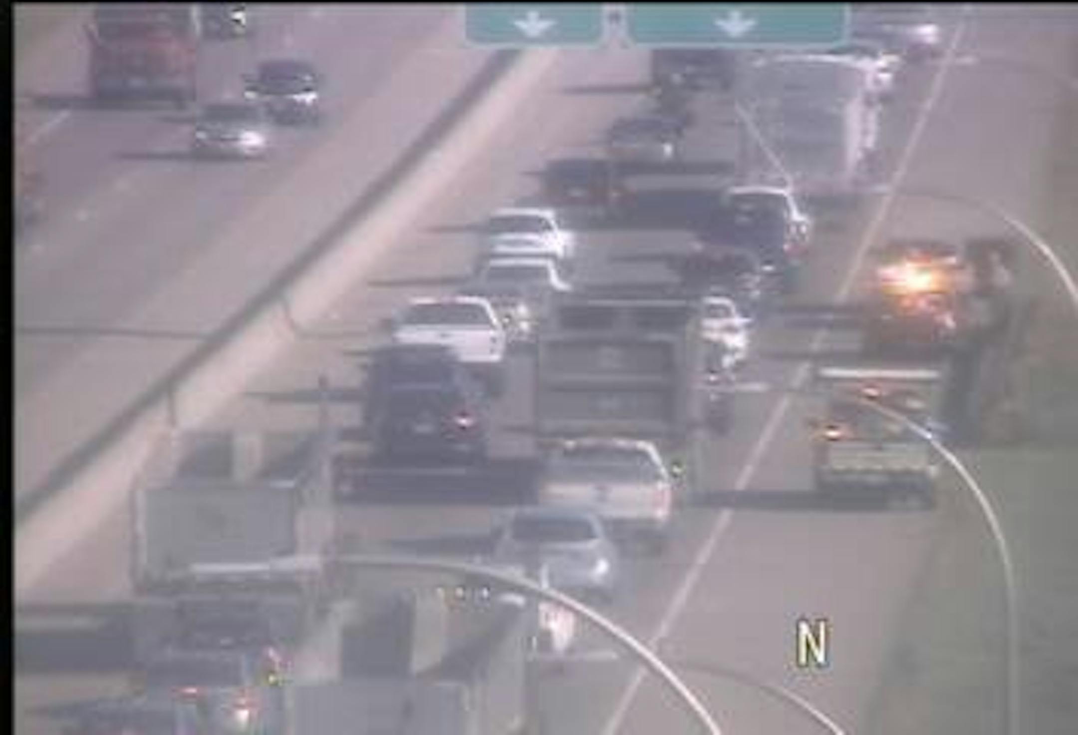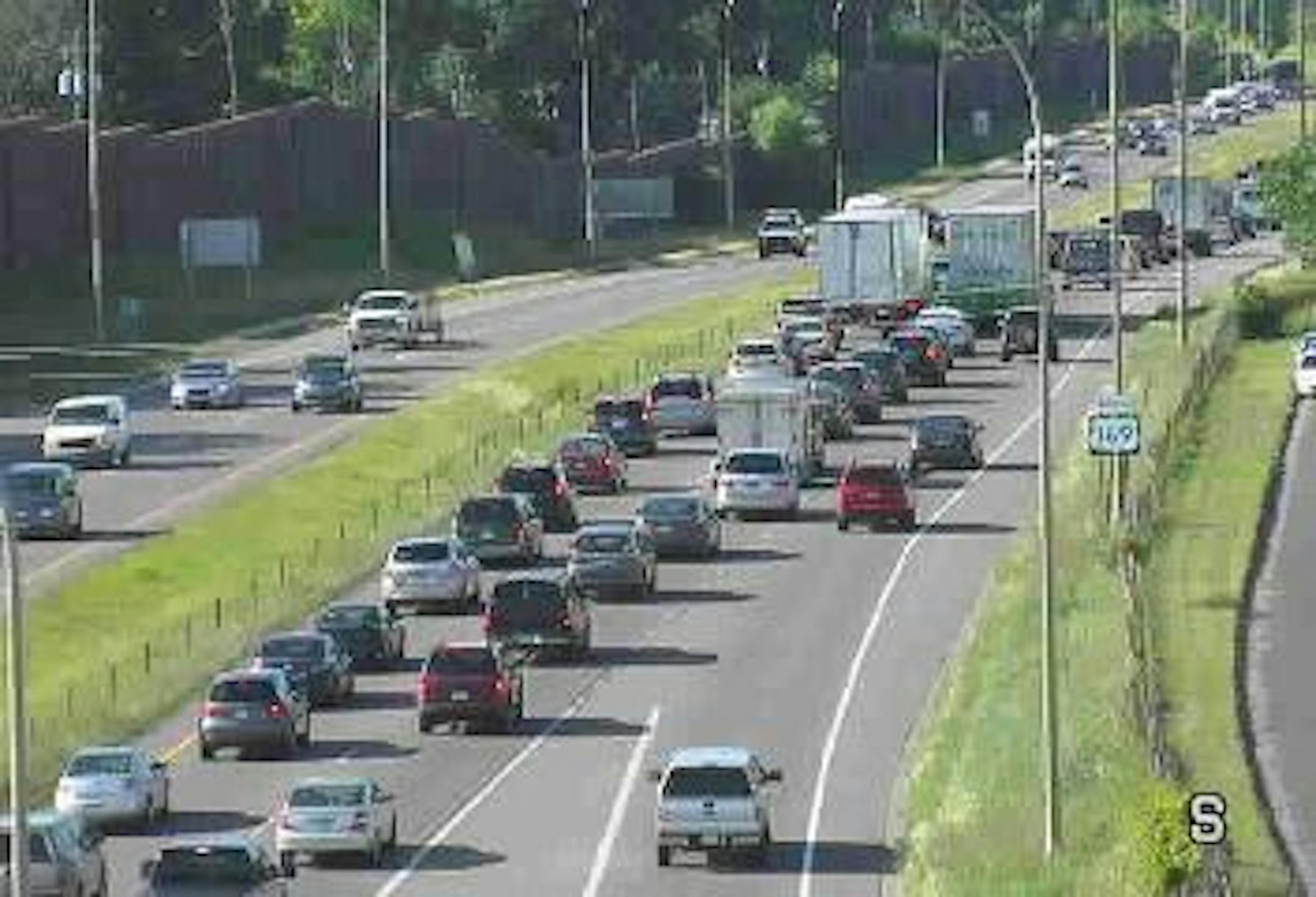 In St. Paul, traffic stacks up on northbound Hwy. 52 due to a fender bender at Eaton Street and remains heavy up to I-94.