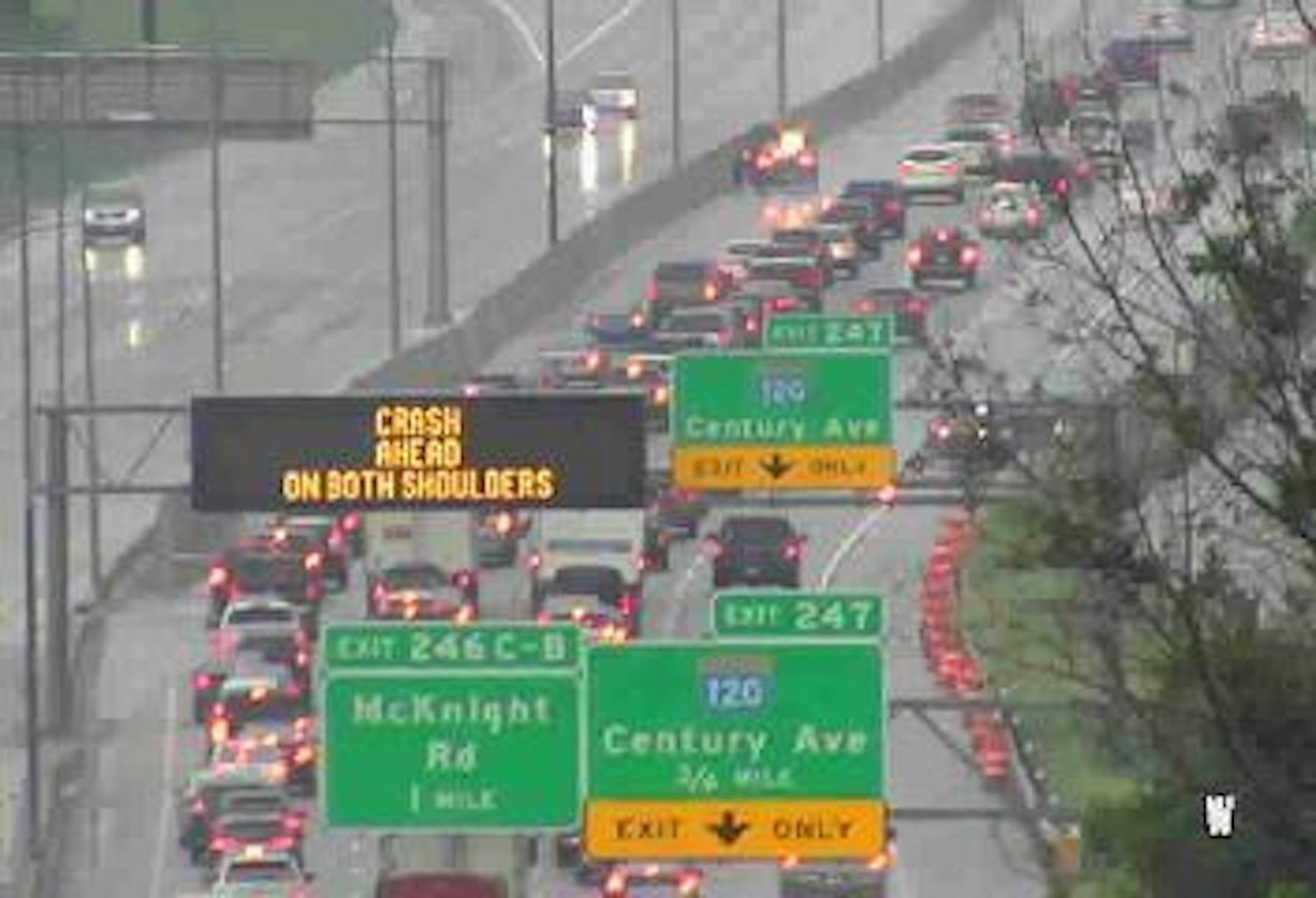 In Roseville, a wreck on the left shoulder is leading to a minor backup on westbound Hwy. 36 at Hamline Avenue. Nothing too bad here. Ahead it's a 10-15 minute ride into downtown.