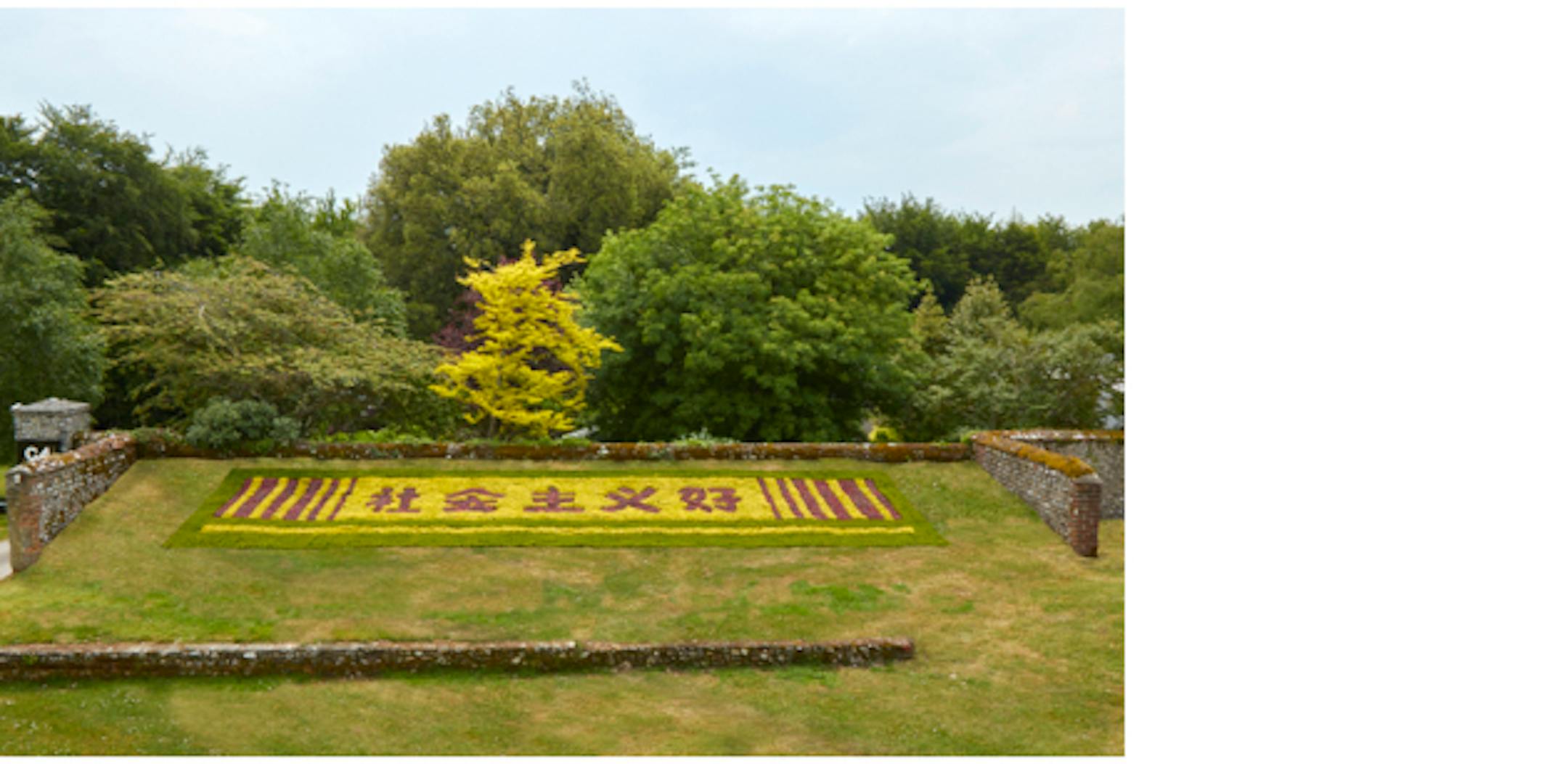 Above: Bo Zheng, Socialism Good, 2016, plants (Alternanthera and weeds), 4 x 16 meters
