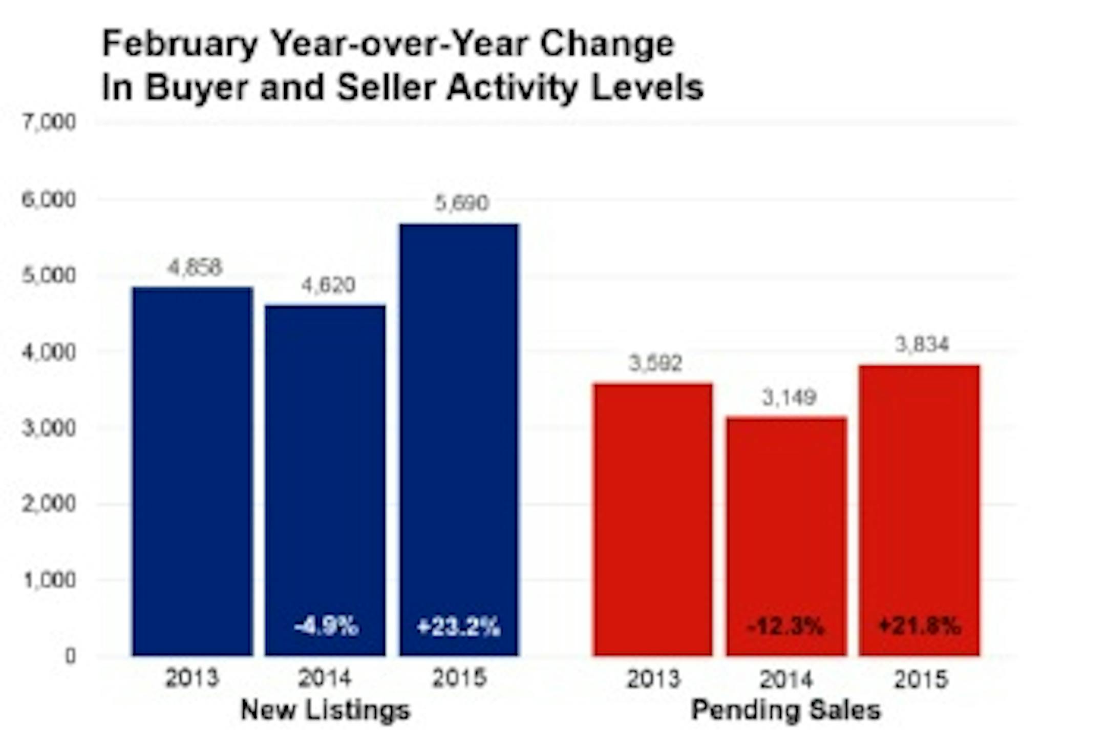 ending sales were up double-digits, closings were up only slightly. That's because there's a two- to three-month lag between the time the deal was signed and when it will close. We'll expect to see a bigger increase in closings in the next couple months. We'll have a complete analysis of the February market later today, but here's a snapshot of what happened during the month:
