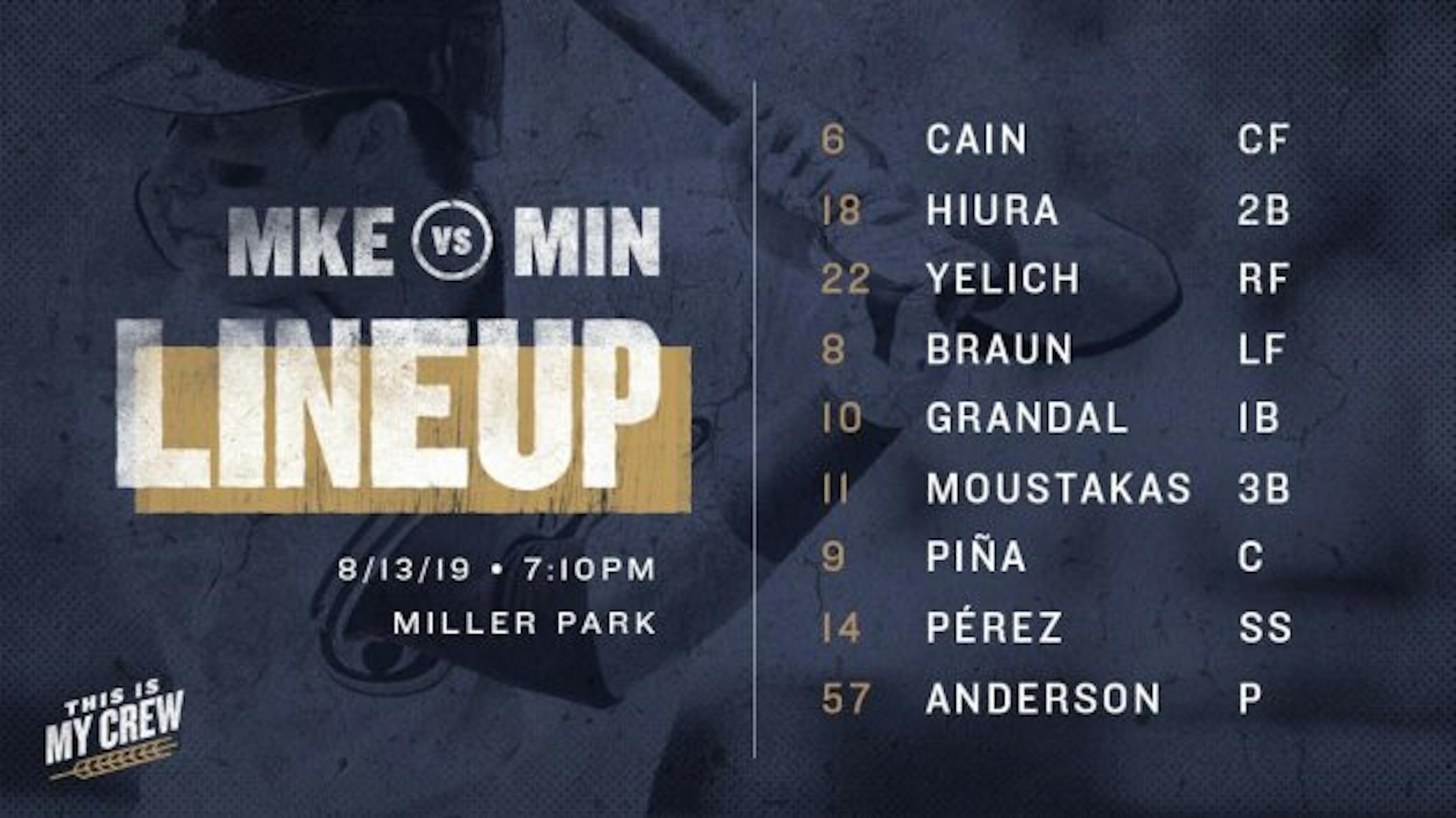 Martin Perez, whose spot in the rotation seems to be in danger, pitches tonight for the Twins with his ERA ballooning to 4.80. Chase Anderson (5-2, 3.70) pitches for Milwaukee.