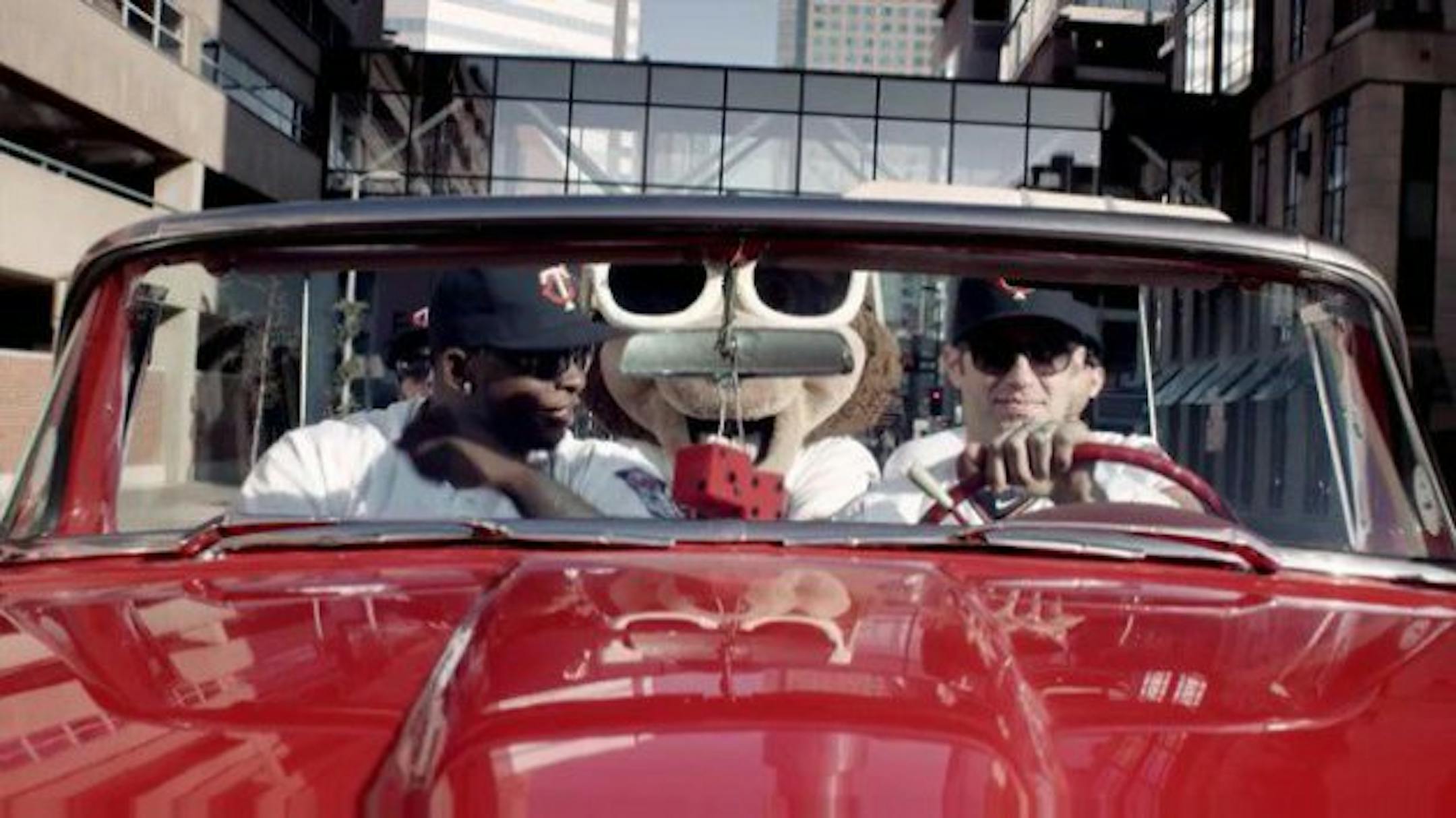 "Summertime is almost here," reads the ad, which shows Twins stars Miguel Sanó, Glen Perkins and Brian Dozier rolling around grooving to the tune in a vintage candy-apple-red Ford Fairlane convertible with mascot T.C. Bear in the middle and the equally cuddly Joe Mauer at the wheel. (Insert joke here about one of the other guys needing to be in the driver seat this season).